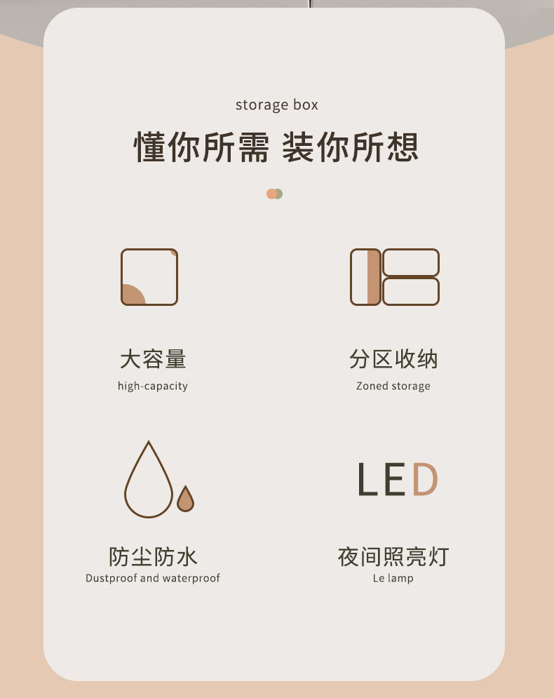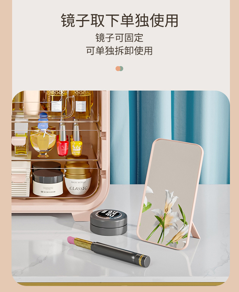 Caja de almacenamiento de cosméticos de gran capacidad de almacenamiento de maquillaje espejo de luz LED de almacenamiento de escritorio lápiz labial productos de cuidado de la piel gabinete de almacenamiento