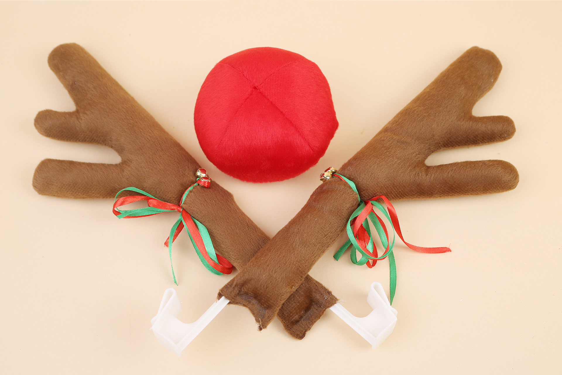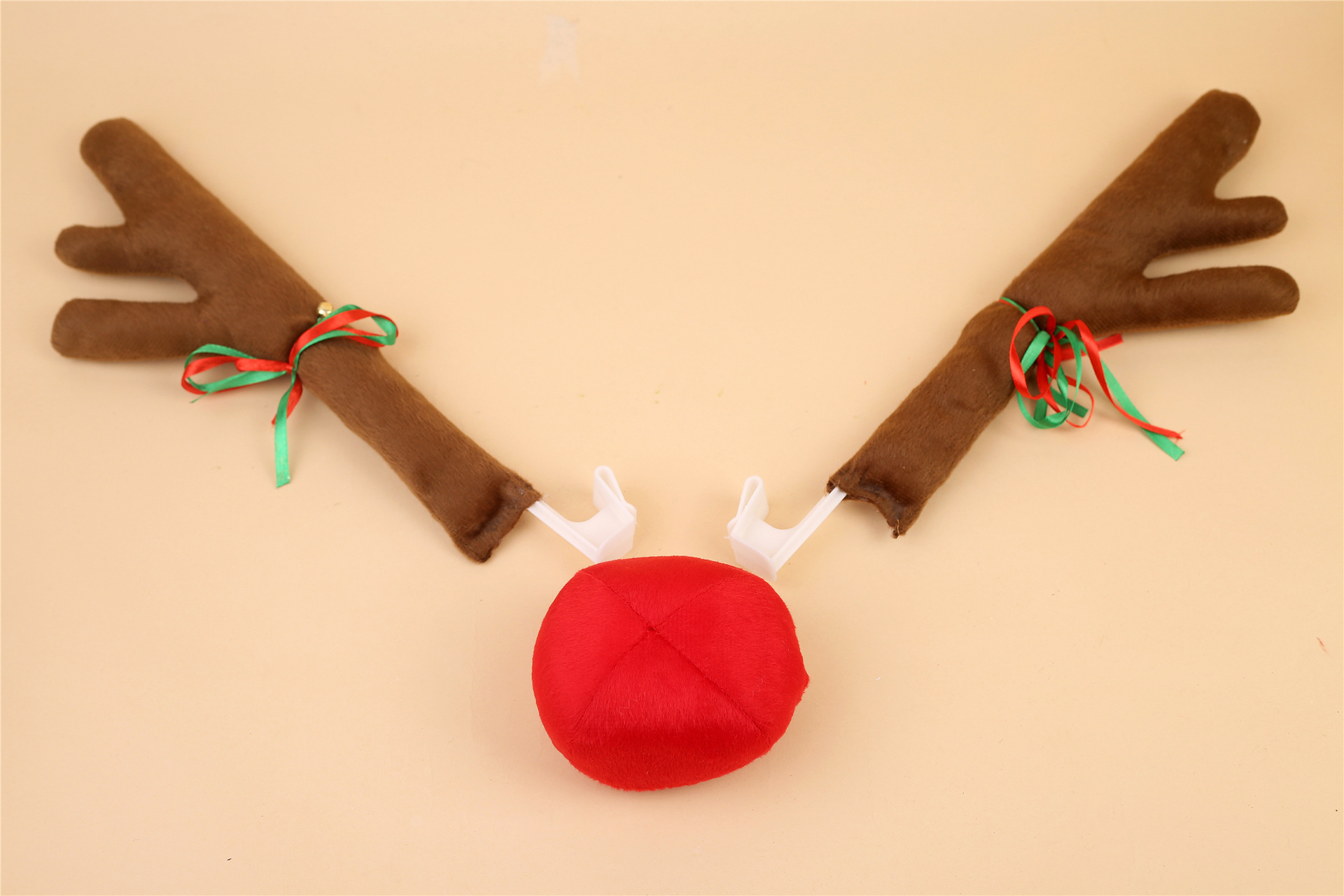 Cruzar la frontera de color marrón oscuro coche astas corta felpa coche decoraciones de Navidad Venta caliente escena accesorios de decoración