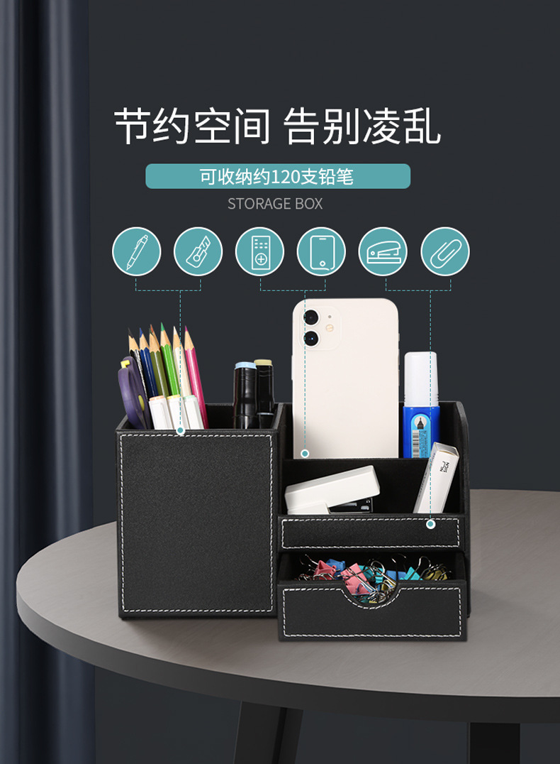 Portalápices de oficina de negocios Caja de almacenamiento de oficina simple moderna Estante de almacenamiento de cuero de papelería de escritorio multifuncional