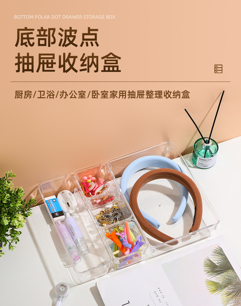 Caja de almacenamiento del compartimiento del cajón combinación traje tocador de plástico transparente bandeja de artículos diversos caja de clasificación multifuncional para el hogar