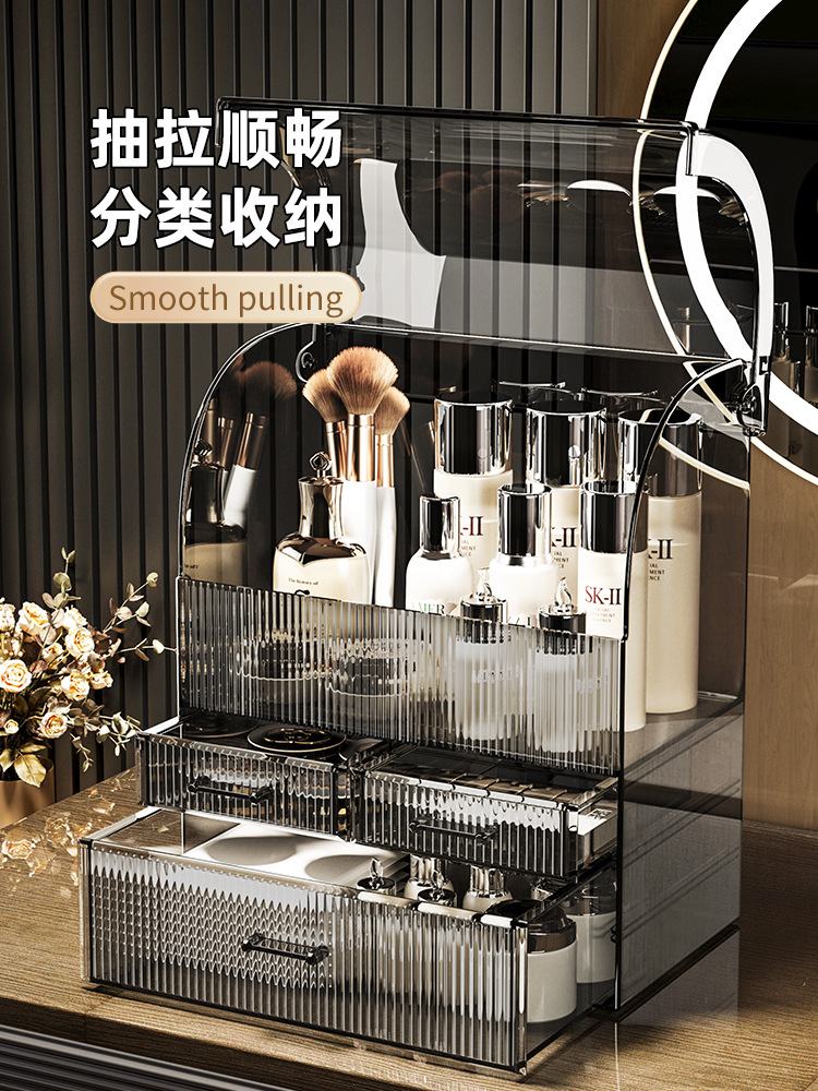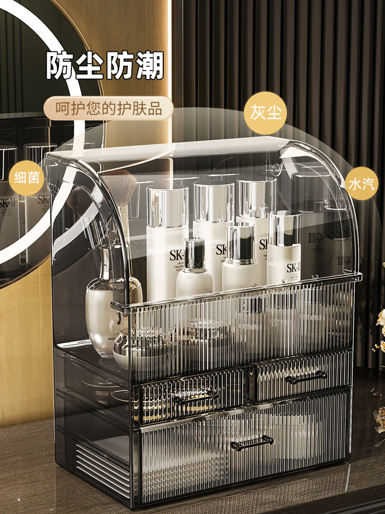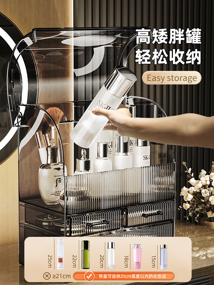 Caja de almacenamiento de cosméticos de lujo ligero cajón de escritorio a prueba de polvo caja de acrílico de gran capacidad máscara de cuidado de la piel transparente