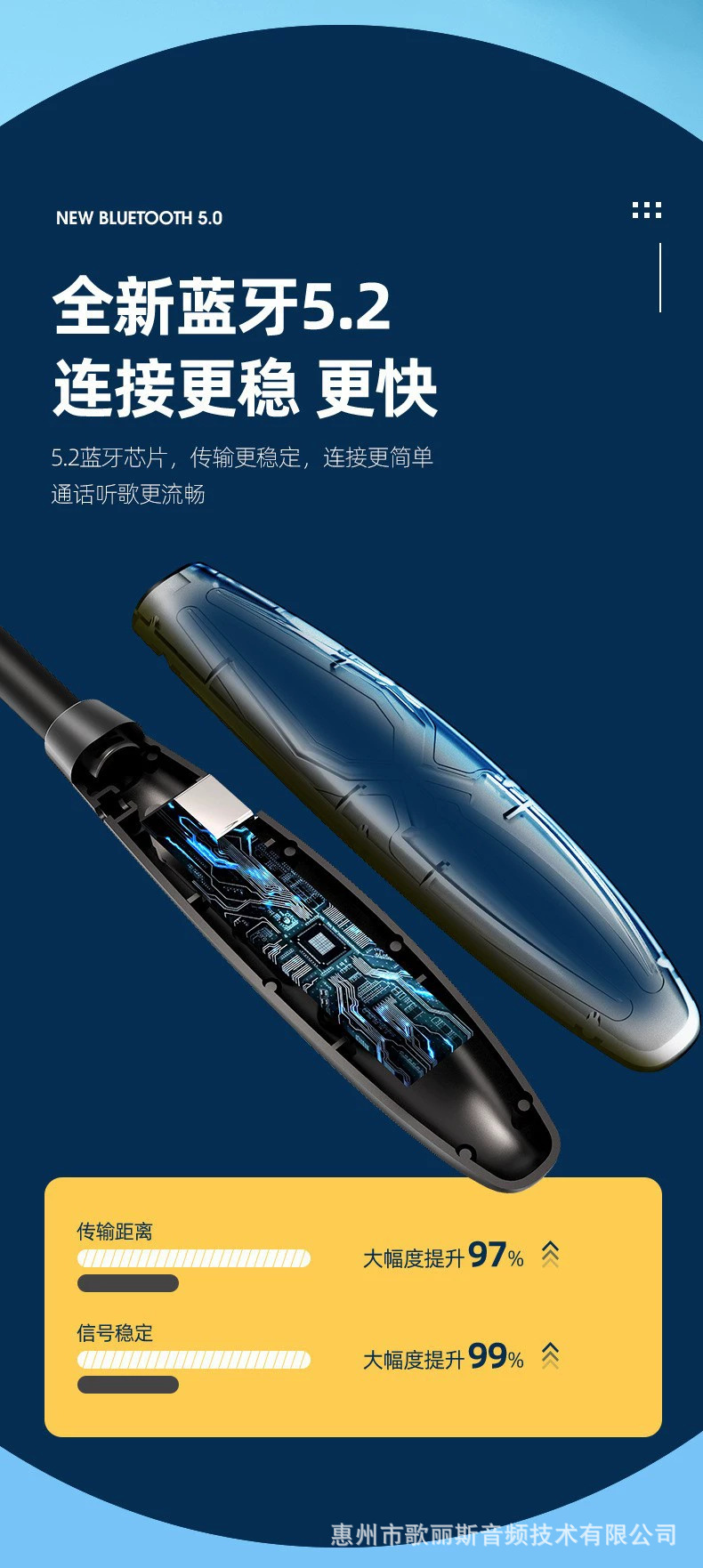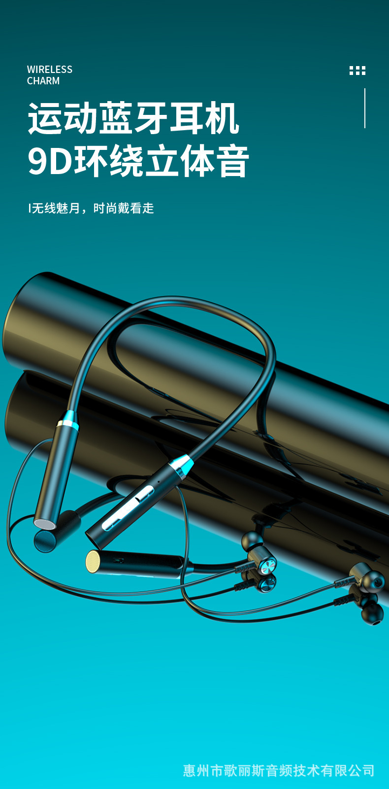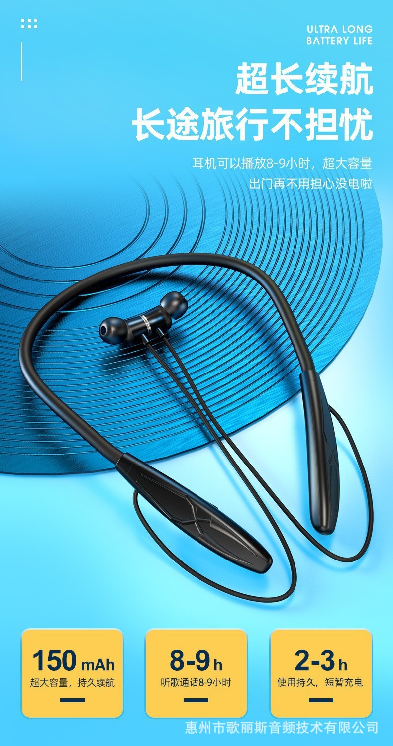 Nuevo Halter Bluetooth auricular inalámbrico montado en el cuello deportes binaural en la oreja ultra-larga resistencia de espera fábrica al por mayor