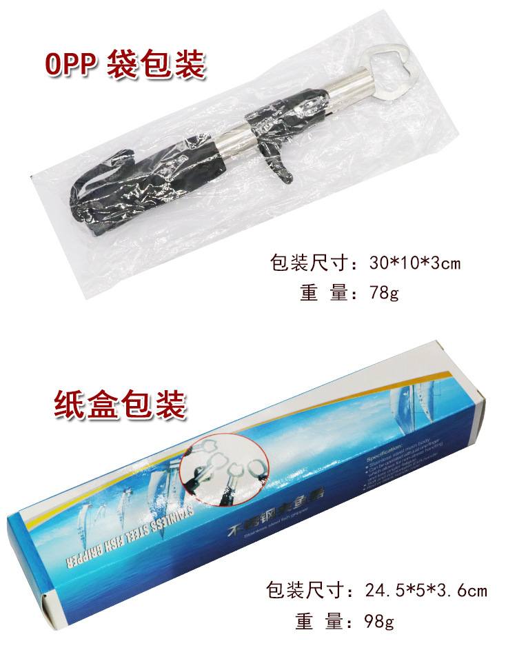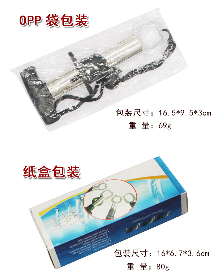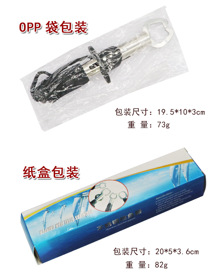| Color | Dispositivo de control de peces tipo T (bolsa OPP) 69g,Dispositivo pequeño de control de pescado de mango recto (bolsa OPP) 73g,Dispositivo de control de peces con mango de pistola (bolsa OPP) 78g,Dispositivo de control de peces tipo T (caja de papel) 80g,Dispositivo pequeño de control de peces de mango recto (caja de papel) 82g,Dispositivo de control de peces con mango de pistola (caja de cartón) 98g |