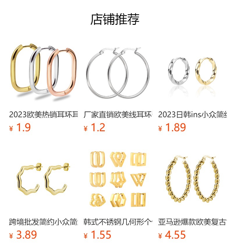 Ebay transfronteriza Venta caliente pendientes de acero de titanio Luz de lujo nicho de alto grado electrochapado temperamento gradiente pendientes femeninos europeos y americanos hebilla del oído