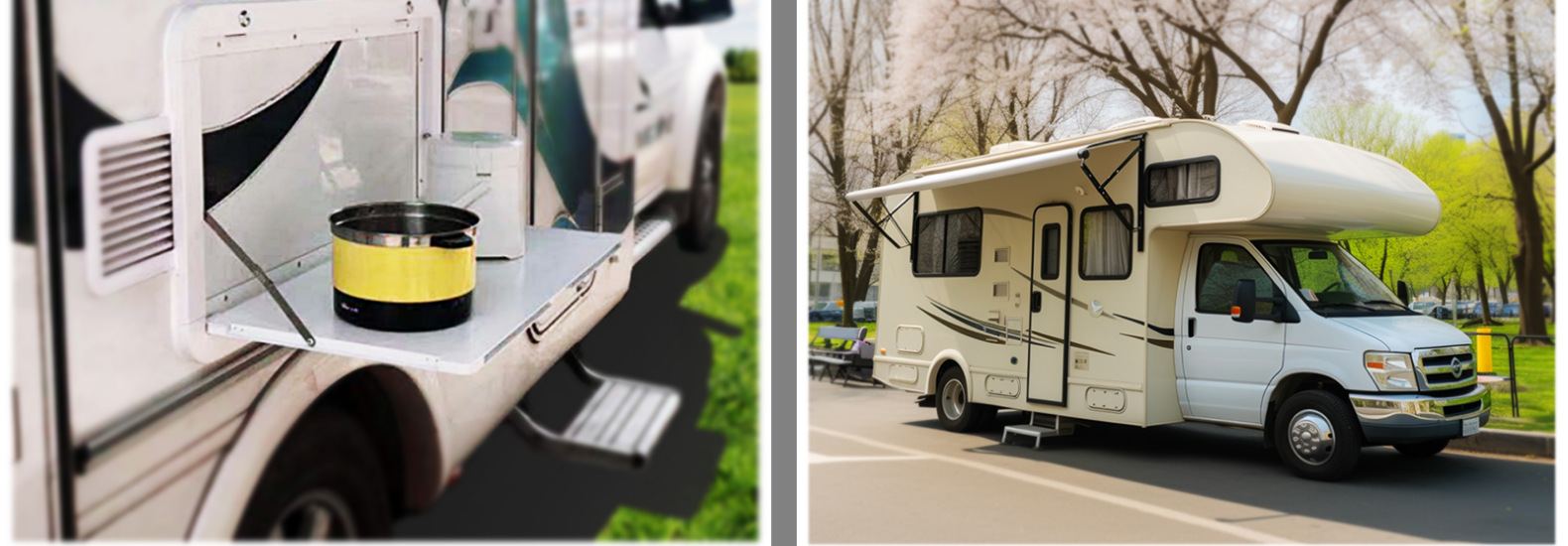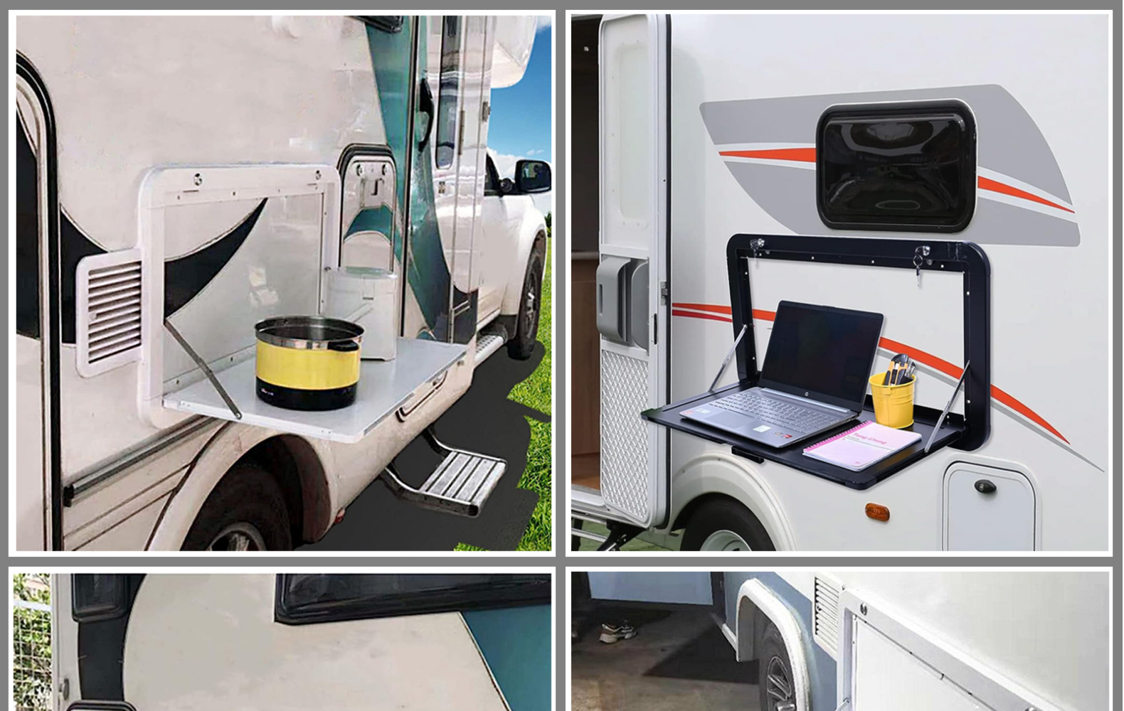 Mesa de comedor externa RV plegable con cerradura de escritorio adjunta mesa de cuerpo de coche tablero modificado aleación de aluminio del coche Mesa extendida cuerpo