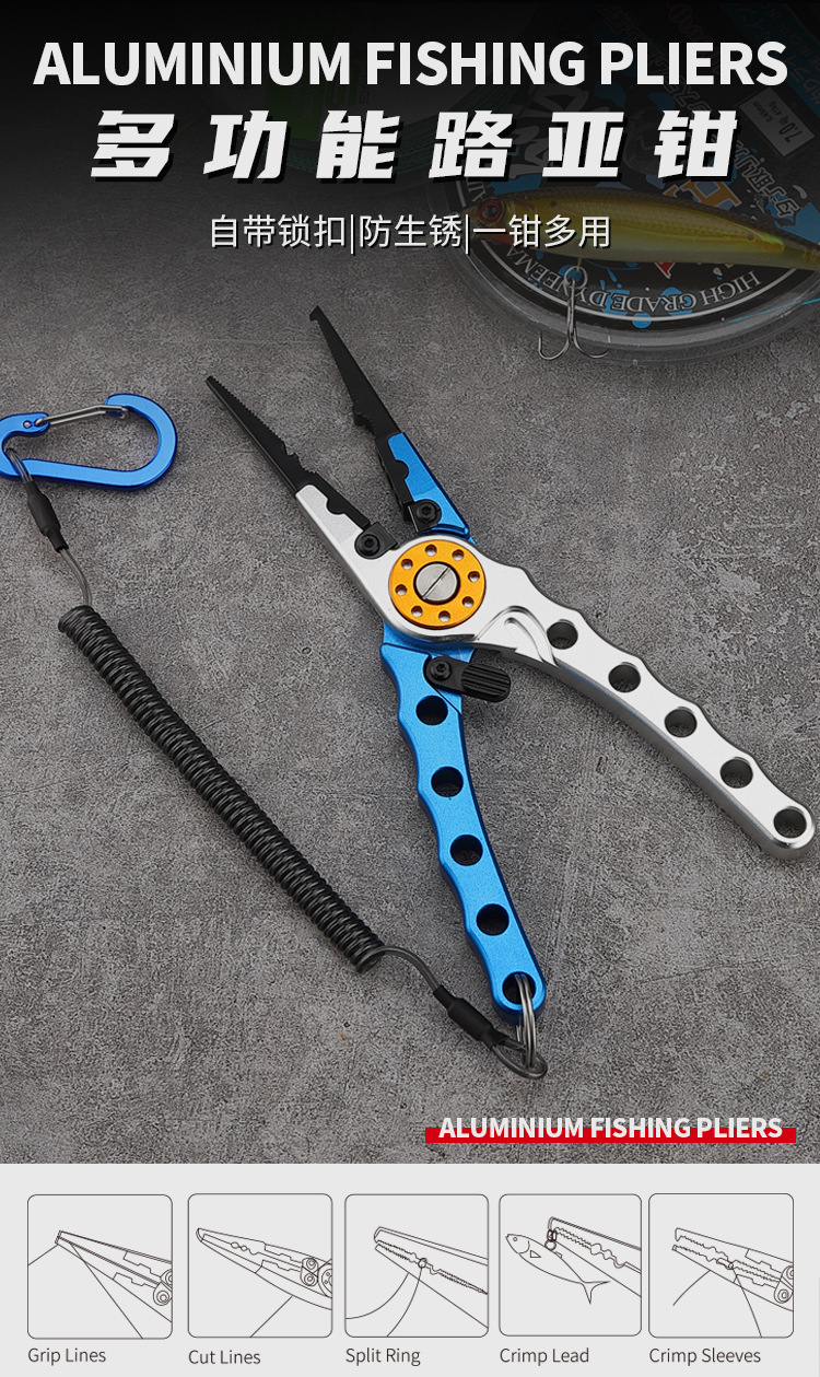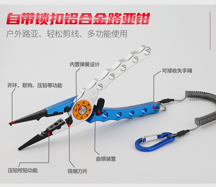 Línea de corte de bucle abierto Luya abrazadera Cable de presión Cinturón de plomo perdido cuerda de aleación de aluminio multifunción tijeras de pesca dispositivo de control de peces
