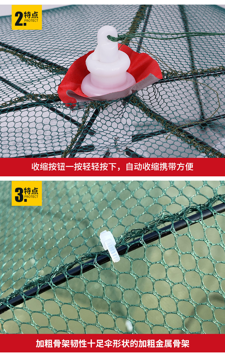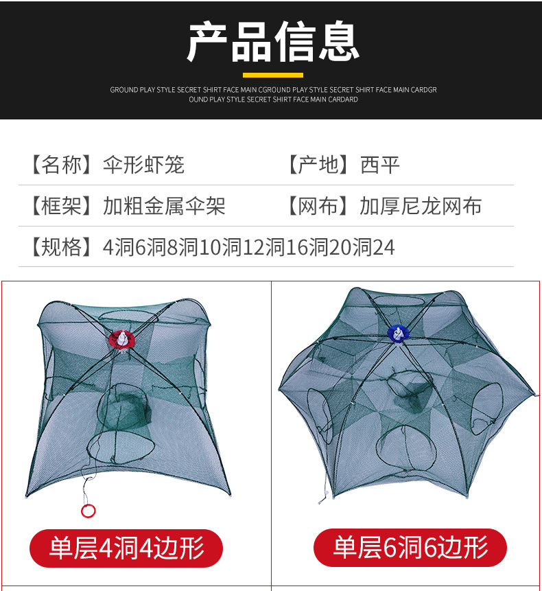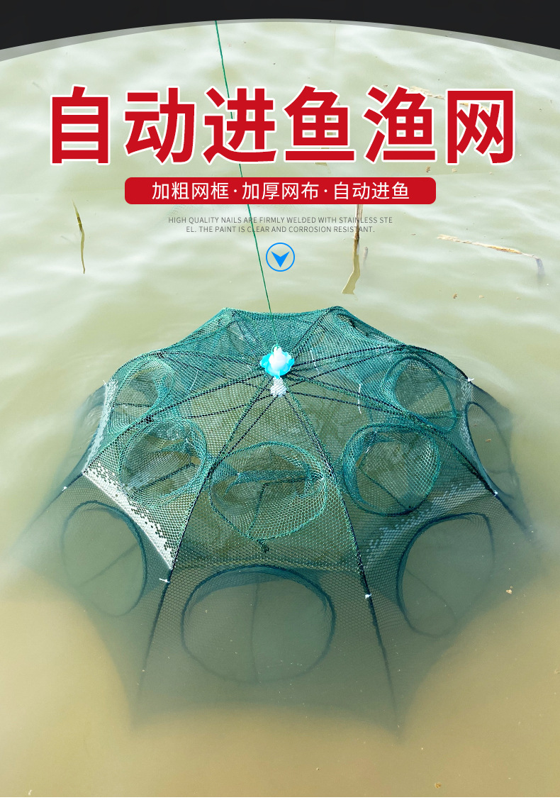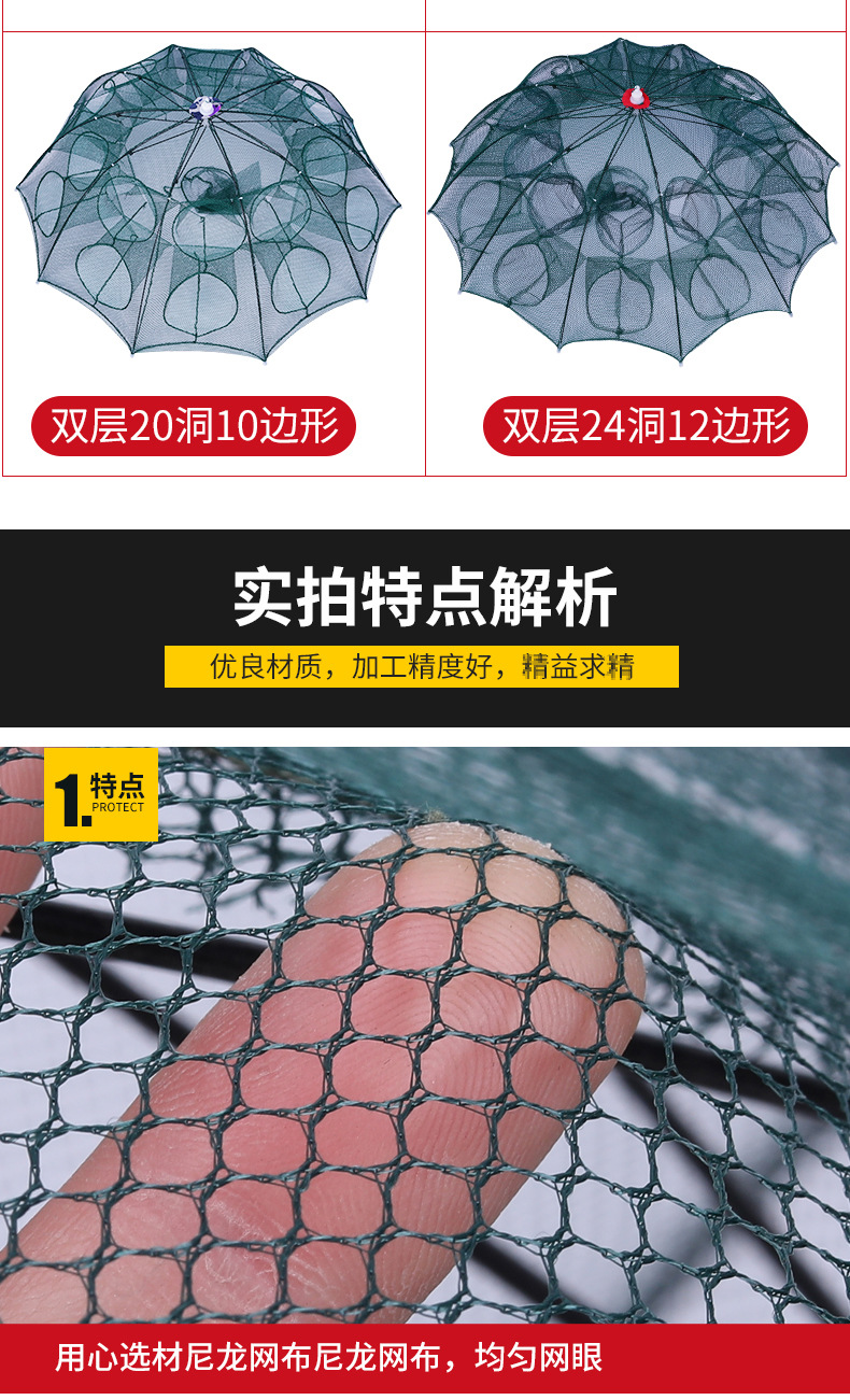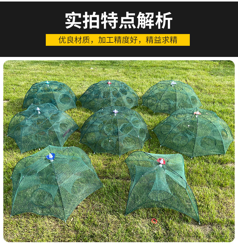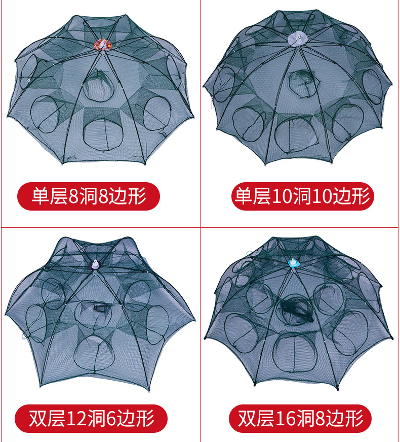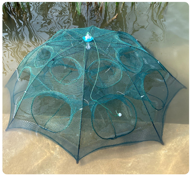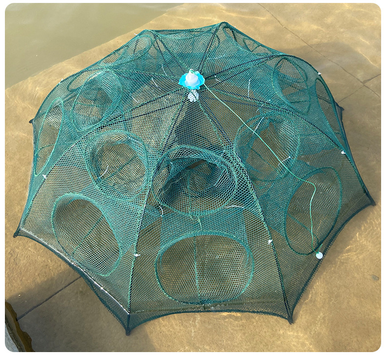Fábrica al por mayor en forma de paraguas jaula de camarones 6812-Hoyos plegable Red paraguas jaula porosa pequeña red de peces en movimiento Red langosta neta artes de pesca
