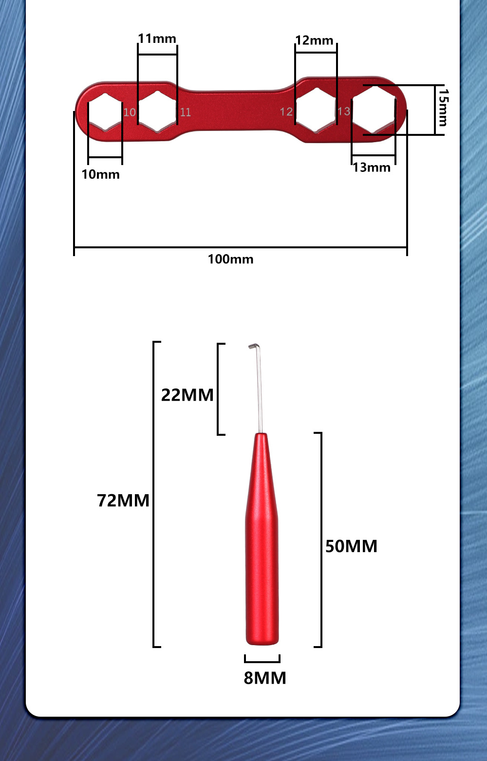 | Colores | Rojo,Negro,Oro,Dispositivo de extracción de la tapa de la píldora,Barra de limpieza de inspección de rodamientos,Llave hexagonal de tuerca,Dedal desmontador,Desmontador dos en uno (rojo),Desmontador dos en uno (azul),Set de desmontaje 4 en 1 (color aleatorio) |