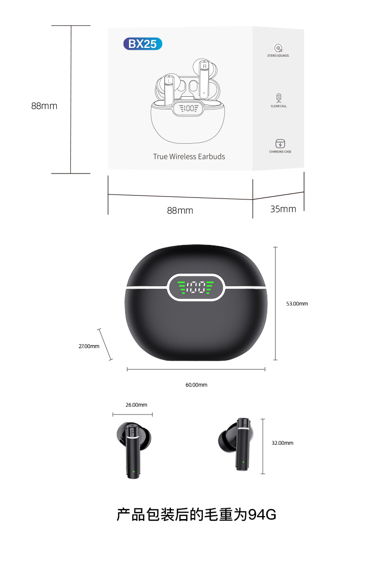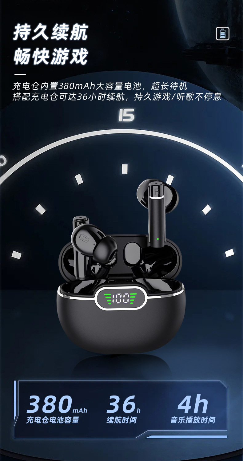 Audífonos Inalámbricos Intrauditivos con Tecnología de Reducción de Ruido, Pantalla Digital, Batería de Ultra Larga Duración, Resistentes al Agua, Bluetooth Inteligente, Baja Latencia