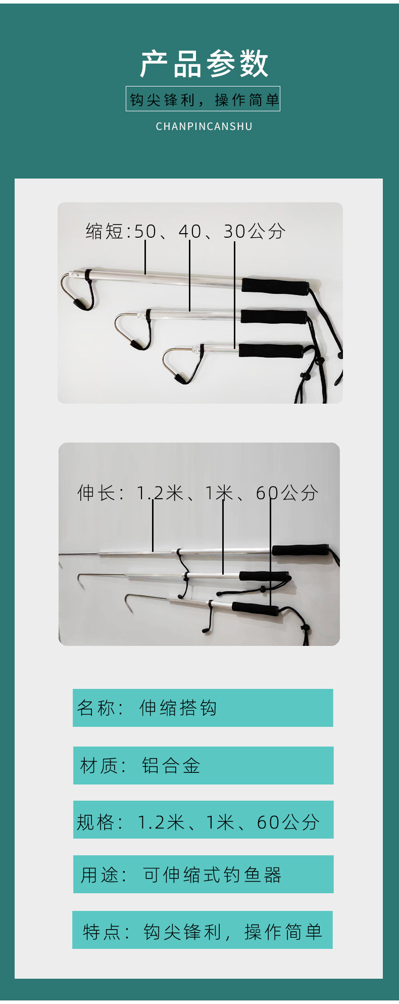 Gancho retráctil gancho de pesca dispositivo de pesca gancho de pesca suministros de pesca barco gancho de pesca artes de pesca gancho de aleación de aluminio