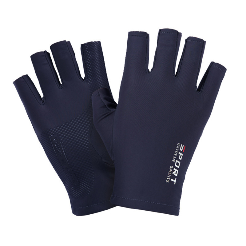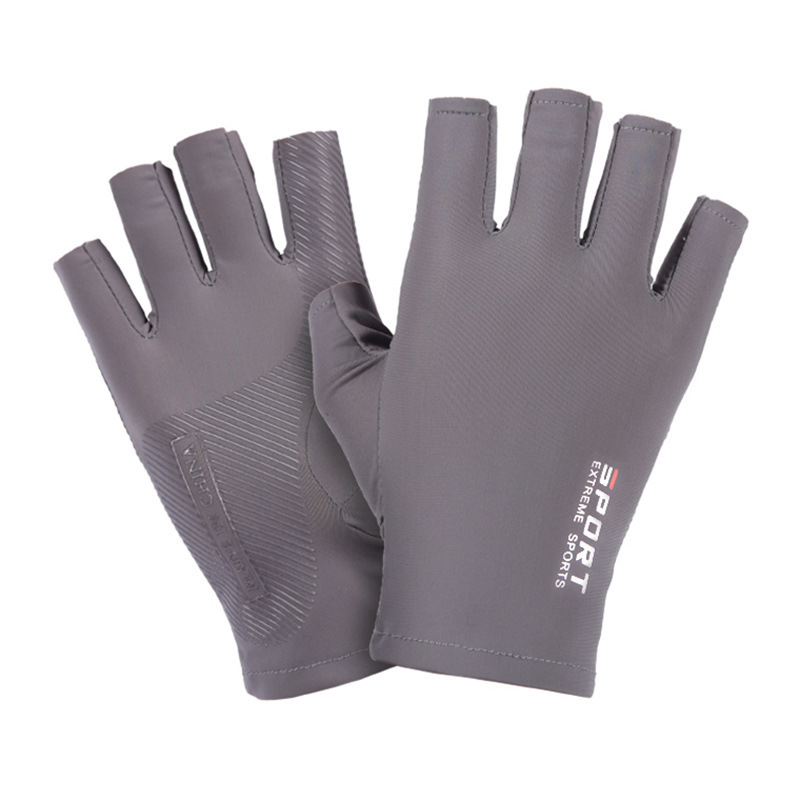 Hombres y mujeres de seda de hielo medio dedo pesca Deportes de alta elástico cómodo guantes de protección solar al aire libre delgada antideslizante montar dos dedos