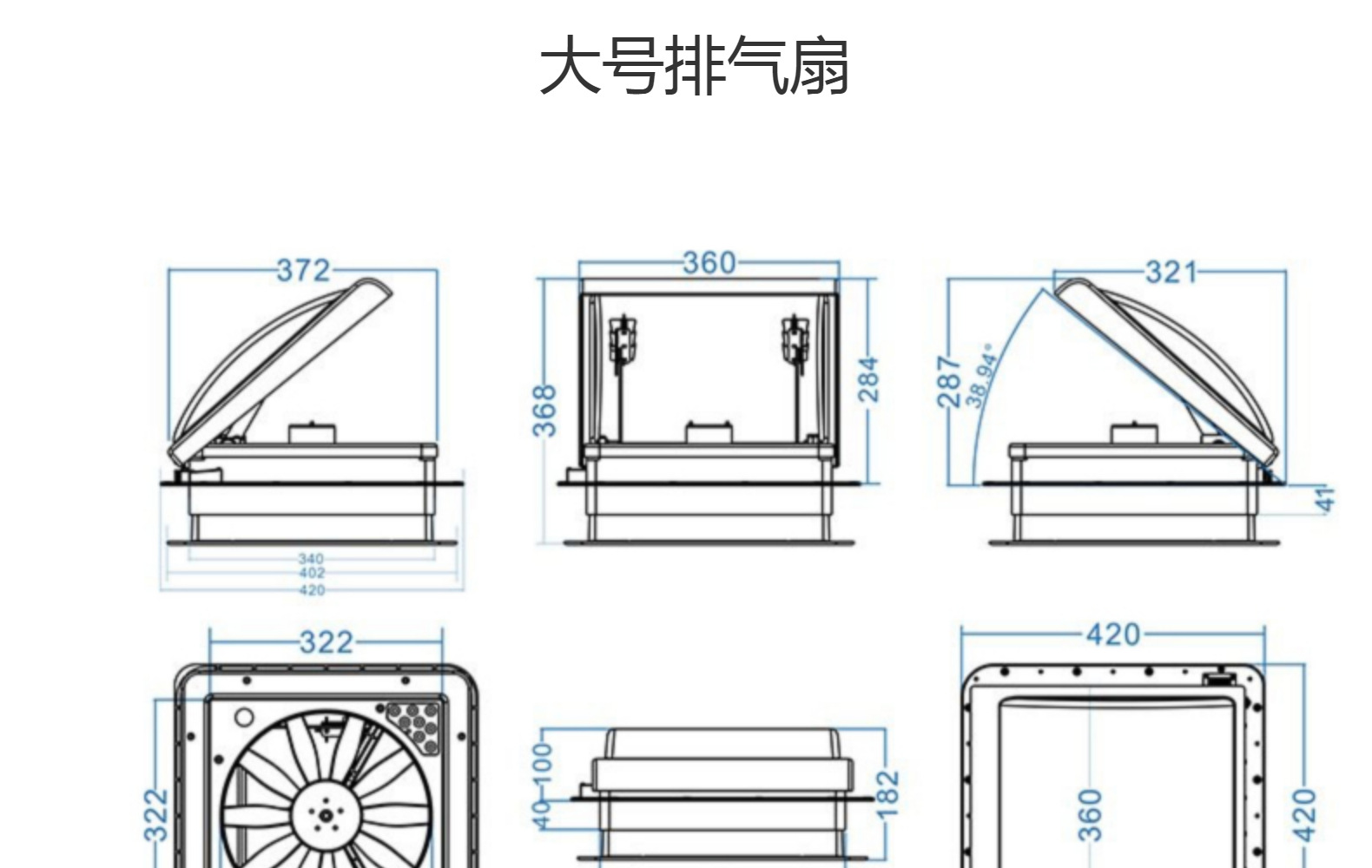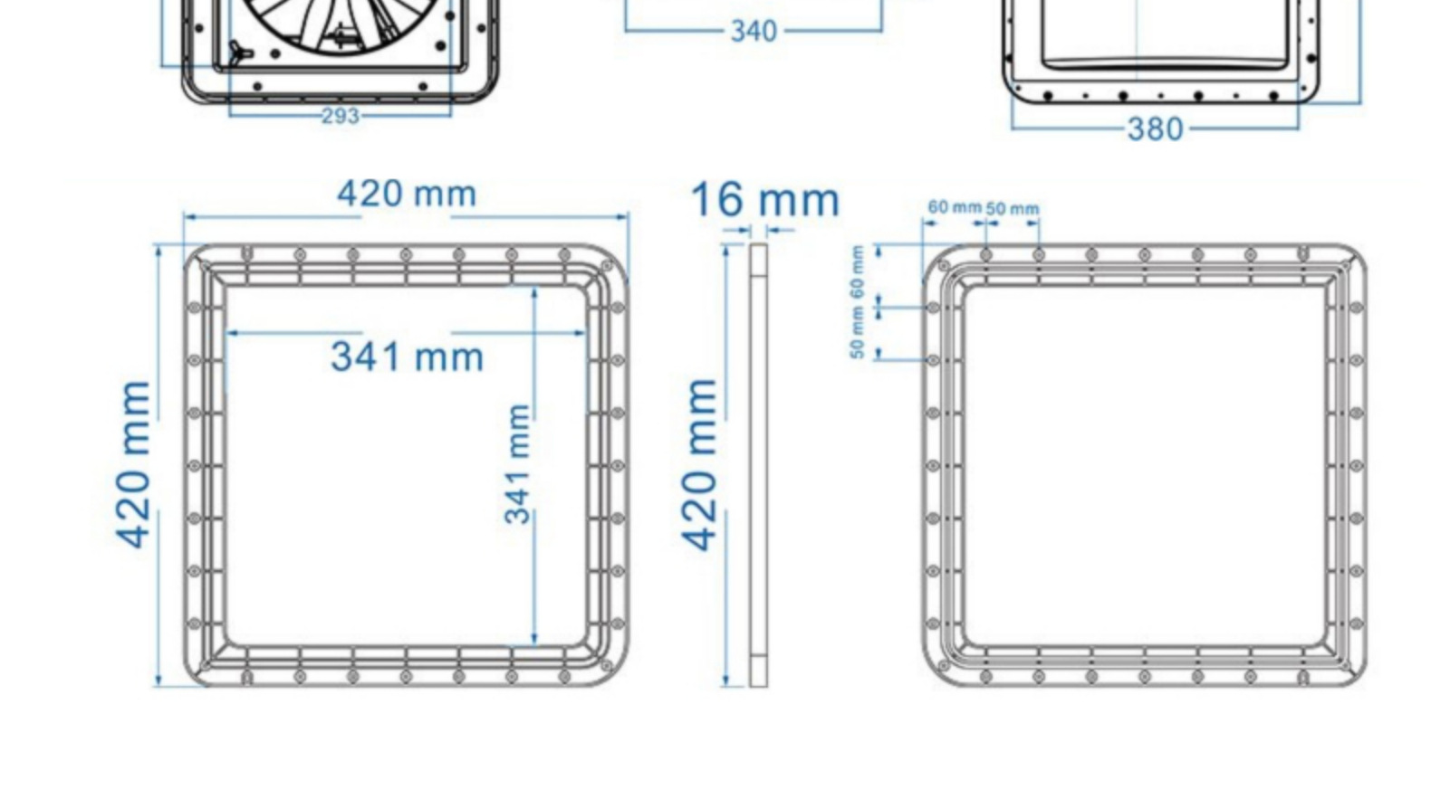 340*340mm con luz tragaluz ventilador de escape RV partes de modificación de arriba RV ventilador