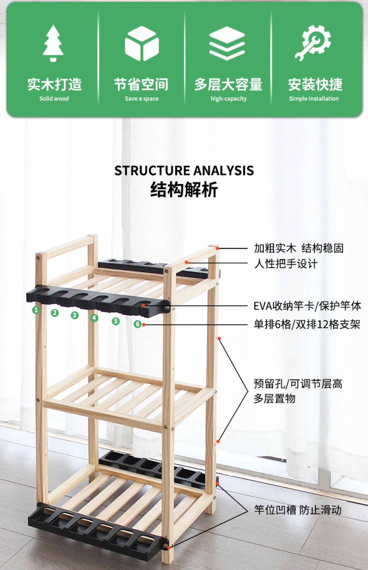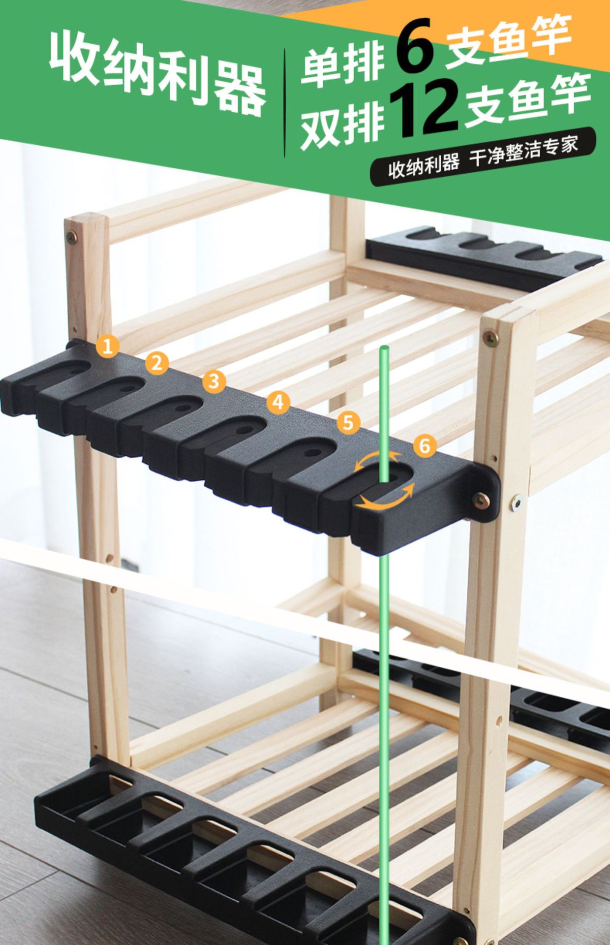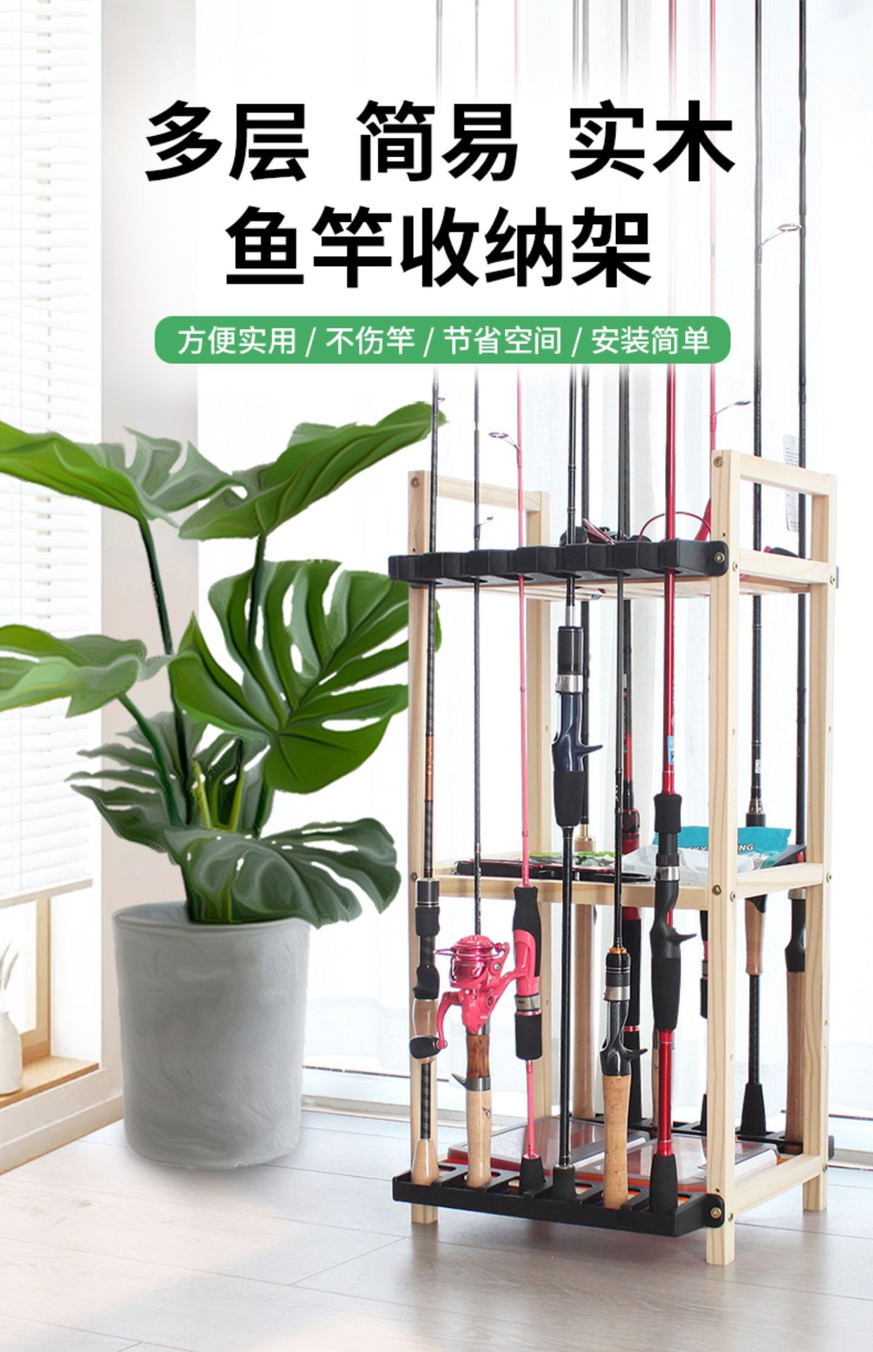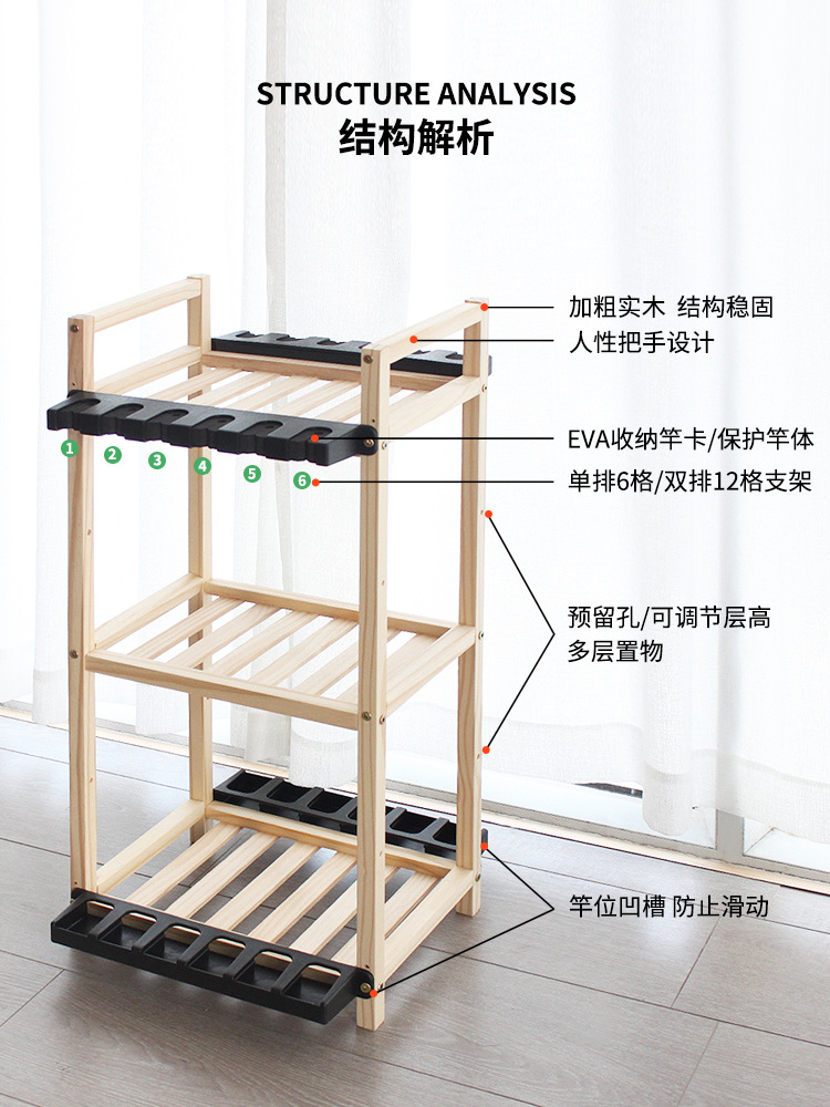 Transfronterizo de madera maciza Barra de pesca estante de exhibición estante de almacenamiento artes de pesca tienda estante de exhibición Luya varilla de mano varilla de billar estante de almacenamiento