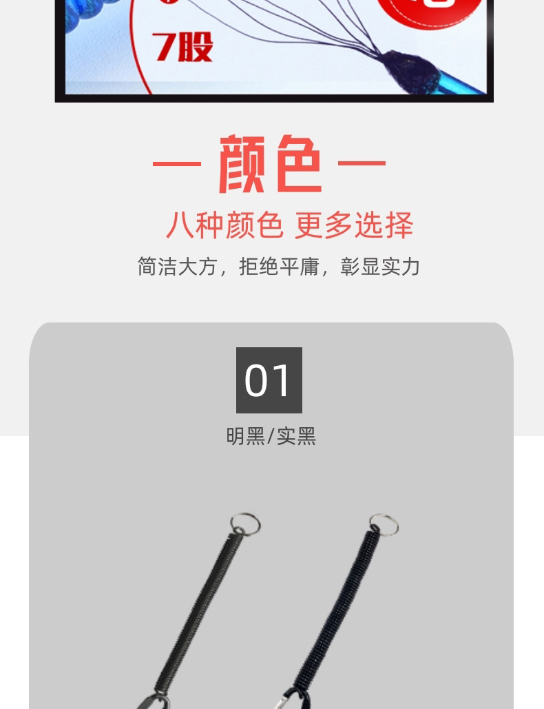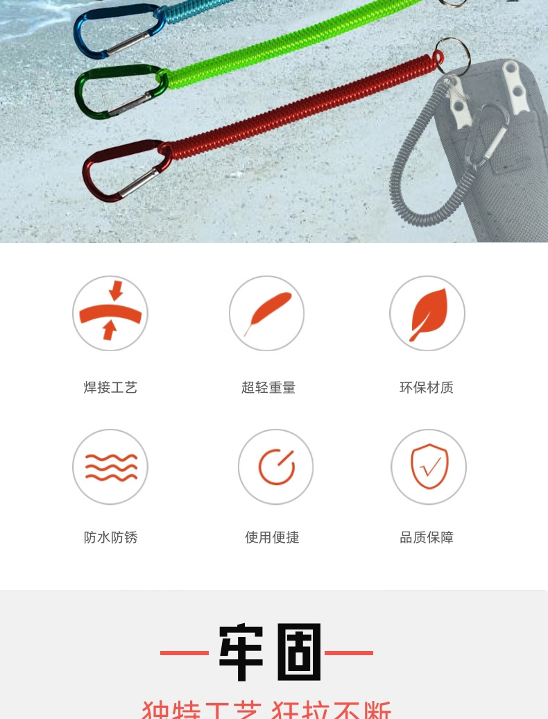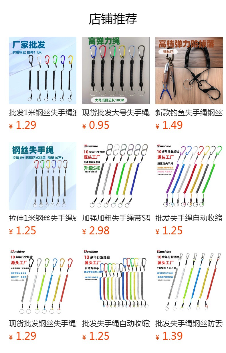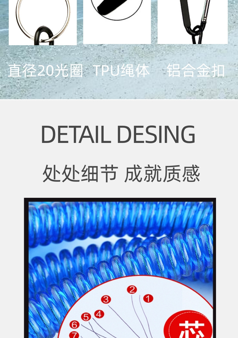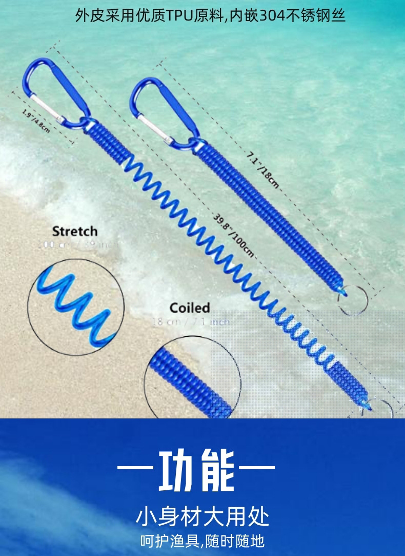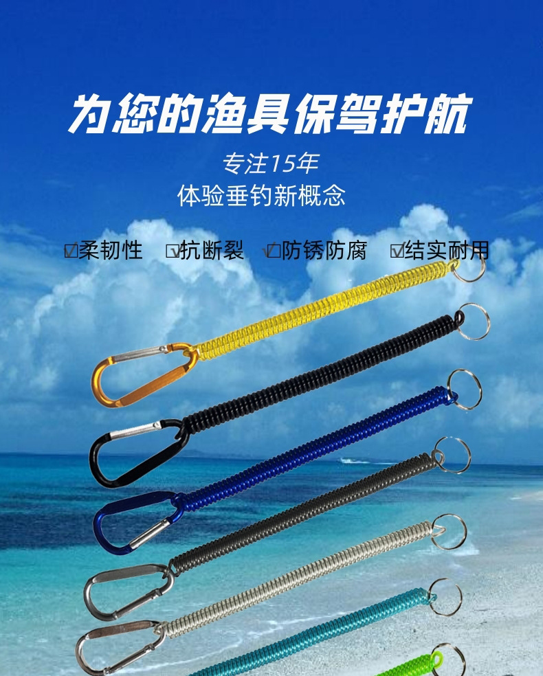 FUENTE Dispositivo de control de peces al por mayor de fábrica cuerda perdida cuerda de resorte de alambre de acero telescópica 1 M equipo de pesca cuerda anti-perdida a largo plazo en stock