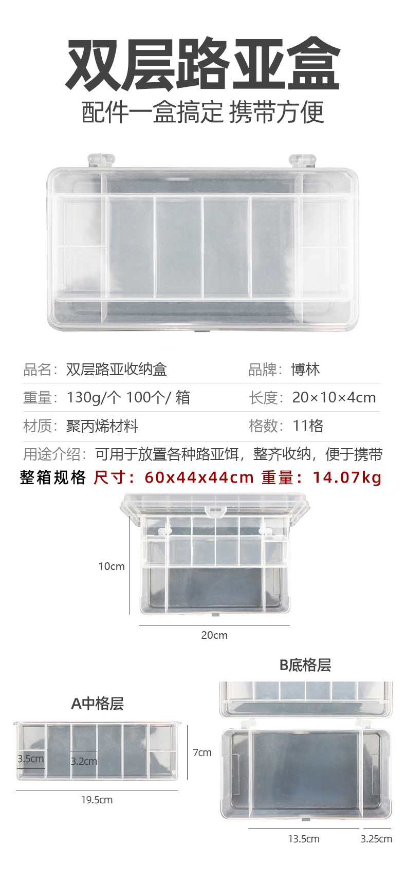 Accesorios para equipos de pesca transparente luya cebo caja de plástico caja de almacenamiento de doble capa imitación cebo falso cebo caja de fábrica al por mayor