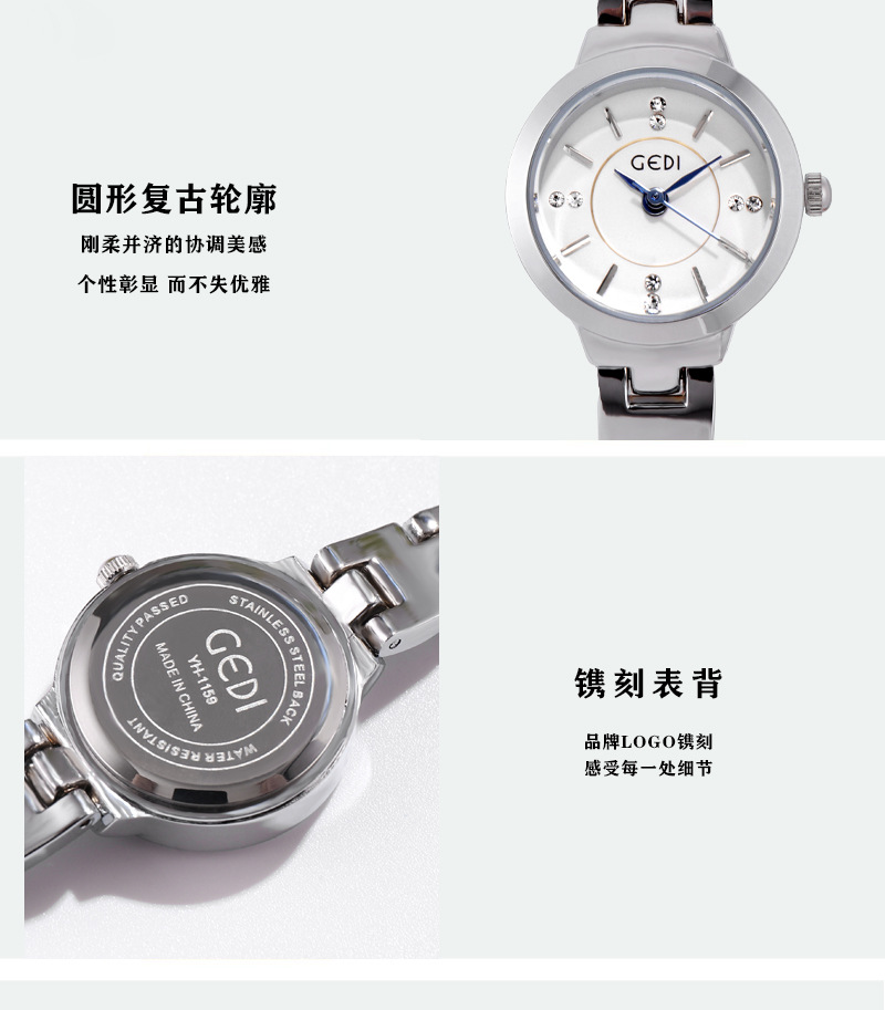 GEDI exquisito diamante-incrustado estudiante reloj al por mayor impermeable pequeño elegante pulsera de aleación reloj de cuarzo de las mujeres
