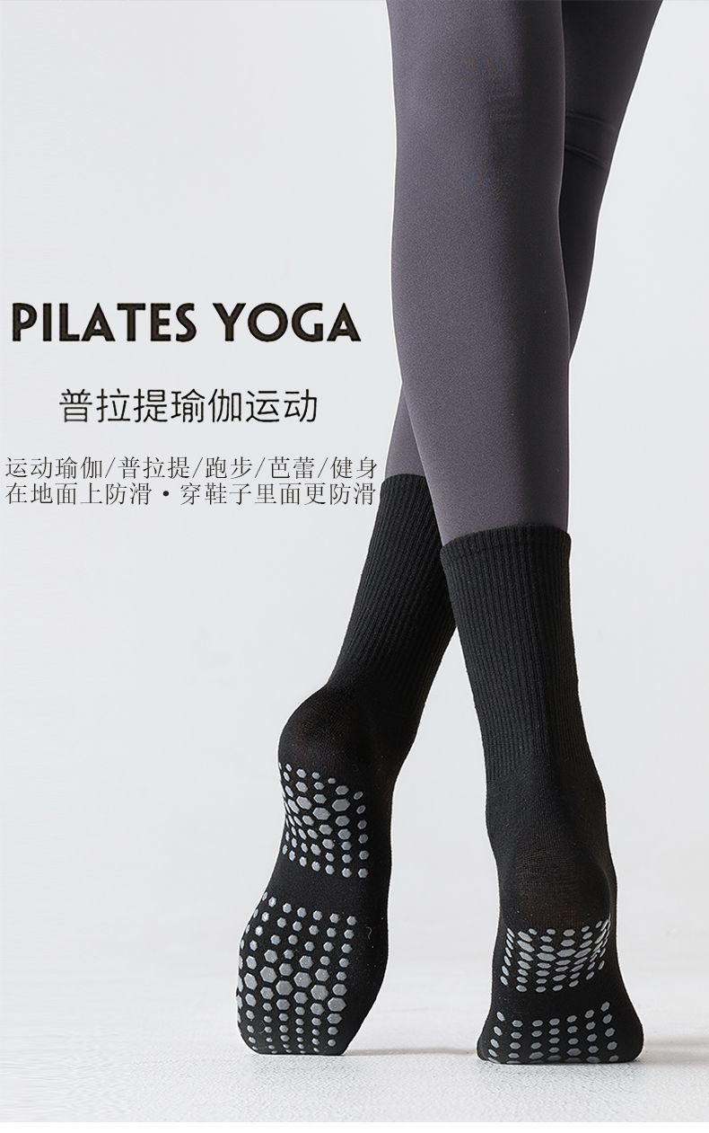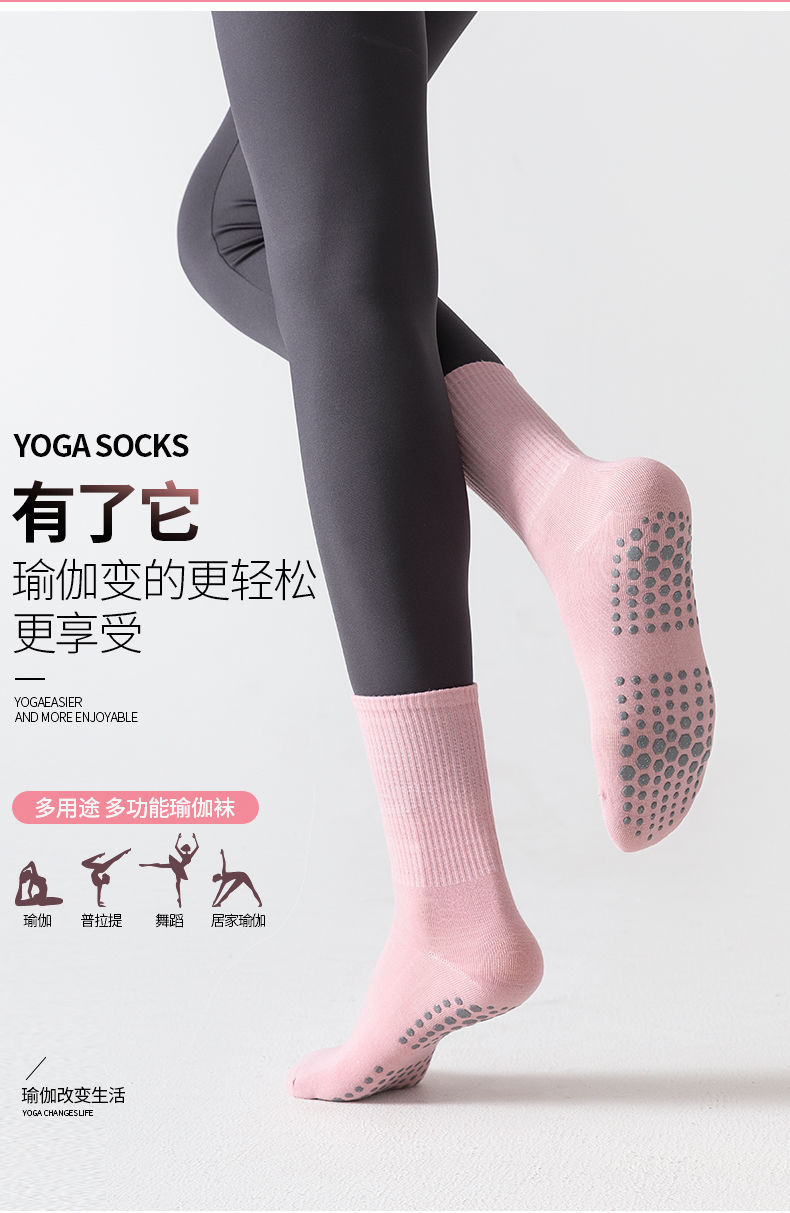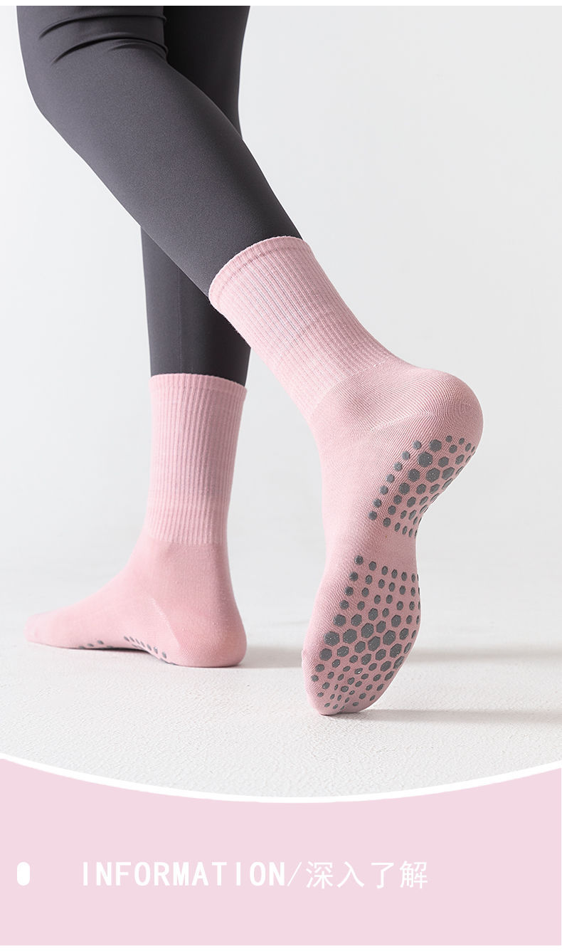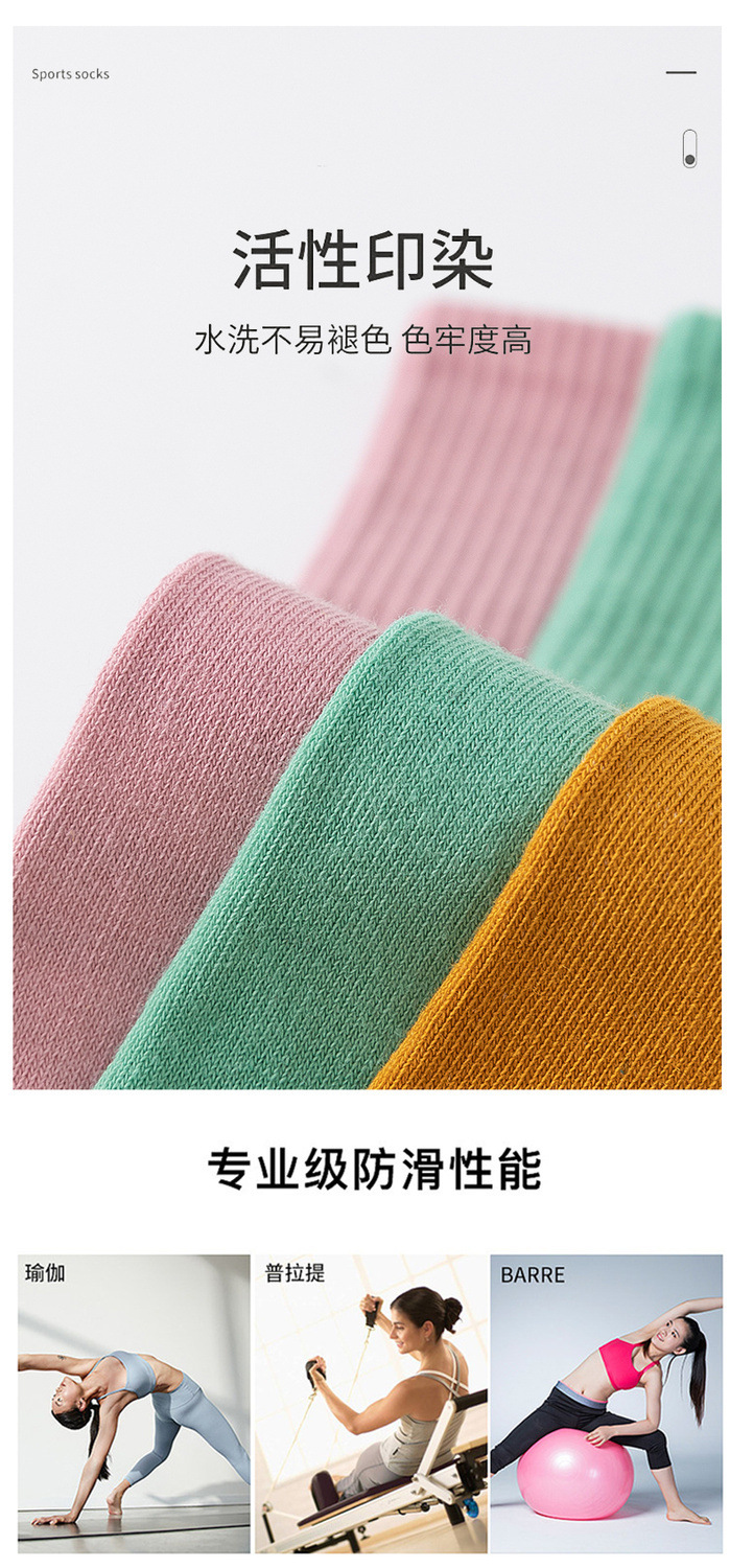 Calcetines de yoga profesionales fondo de silicona aeróbicos antideslizantes deportes calcetines de media pantorrilla calcetines de algodón de color sólido gimnasio interior de las mujeres trampolín danza