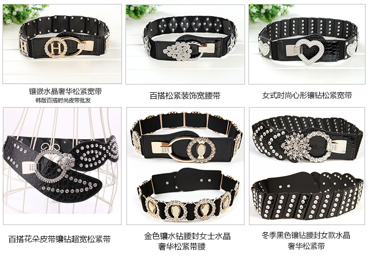 Cinturón de diamantes de imitación cinturón súper ancho estilo coreano de las mujeres cintura elástica sello de cristal decoración versátil moda vestido personalizado para las mujeres