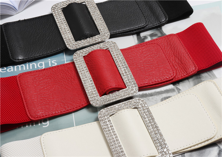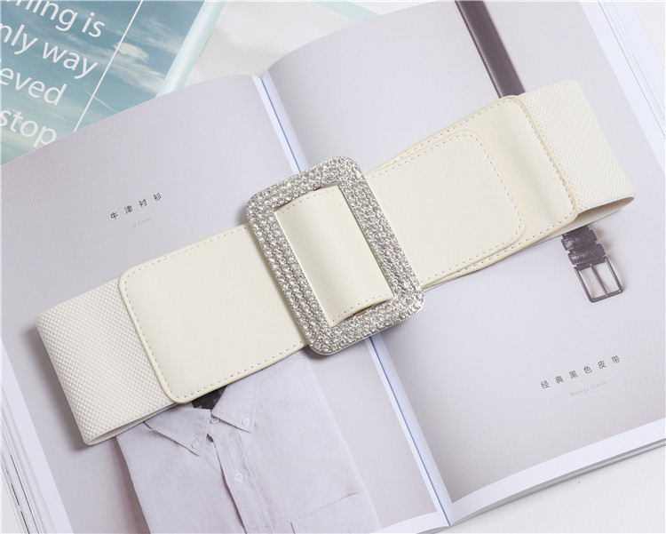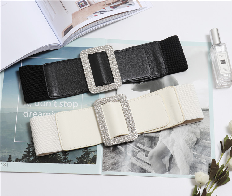Moda todo partido flash diamante plata hebilla cuadrada cintura elástica pu cuero corsé cinturón con vestido ancho cintura sello de una sola pieza entrega