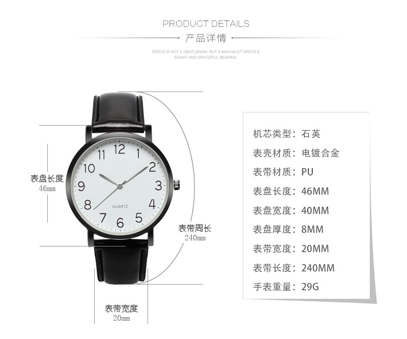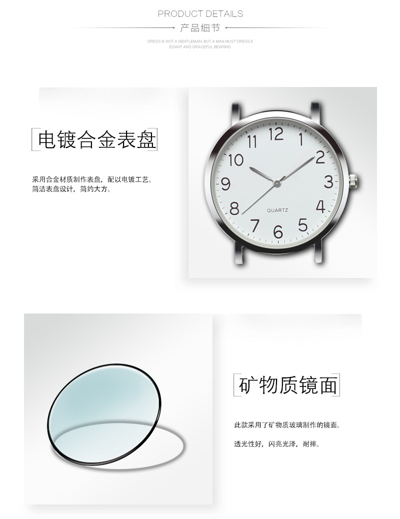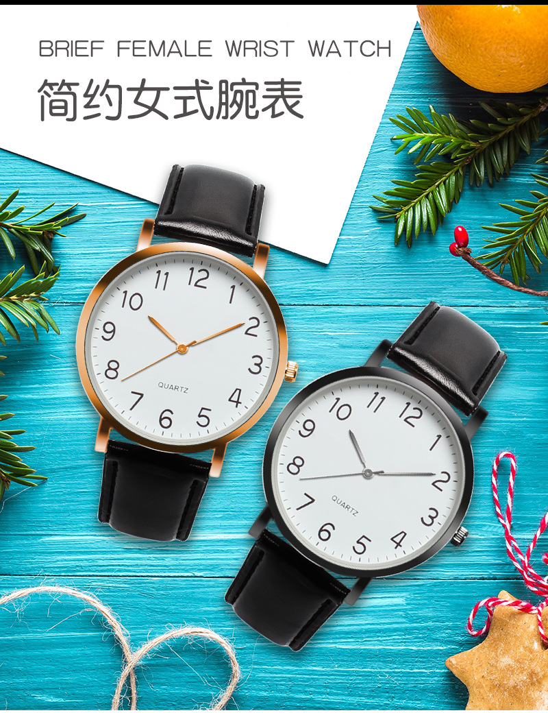 ANT4143皮带金属表带金属12数字休闲手表 男女士分秒线石英表腕表
