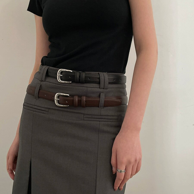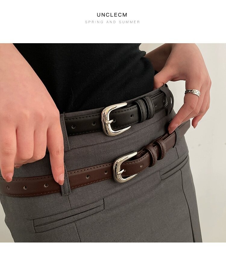 Armario BI correa de repuesto de las mujeres simple y avanzada brillante hebilla de plata cinturón de cuero genuino estudiante juventud decoración estilo coreano pantalones cinturón
