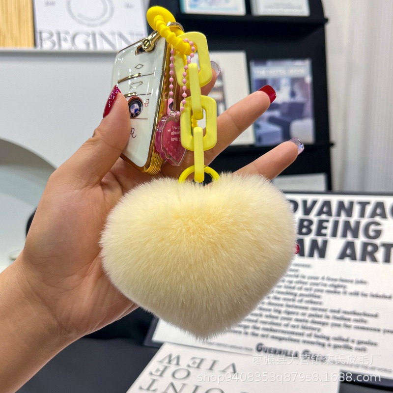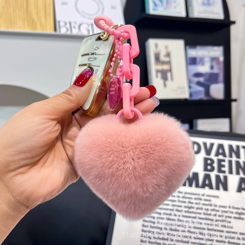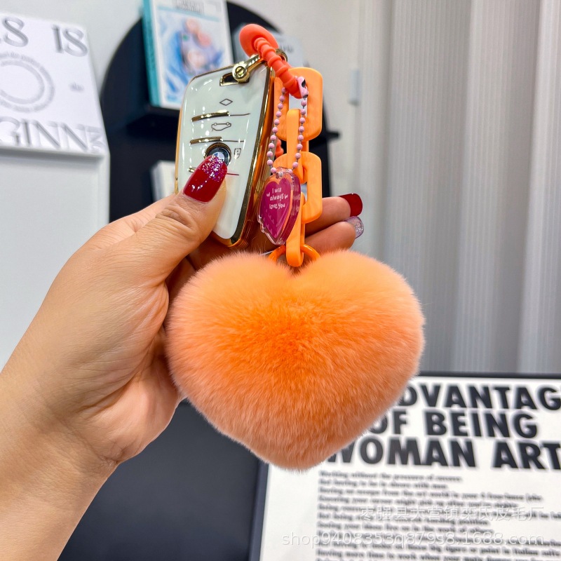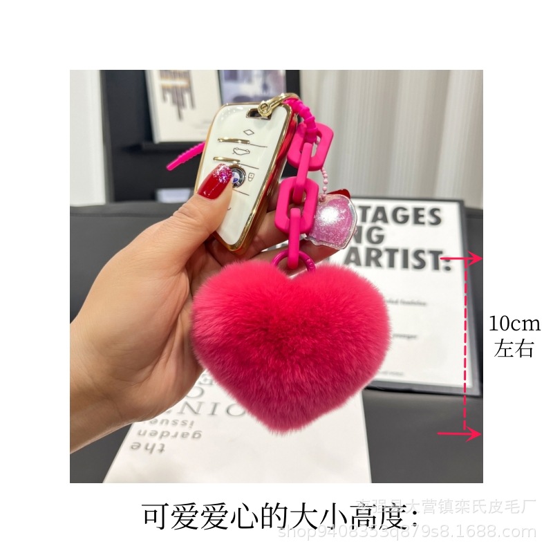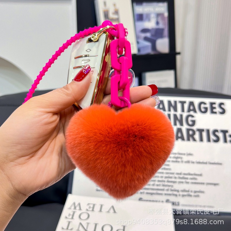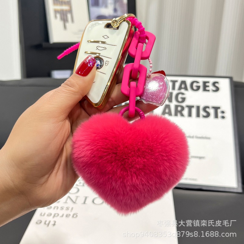 Creativo de silicona real Rex conejo piel amor cadena llavero mochila colgante pareja adornos cadena dominante del coche