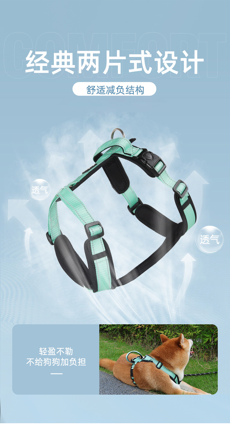 Nueva correa de perro anti-rotura correa de pecho correa de mascota reflectante correa de pecho de perro pequeño y mediano