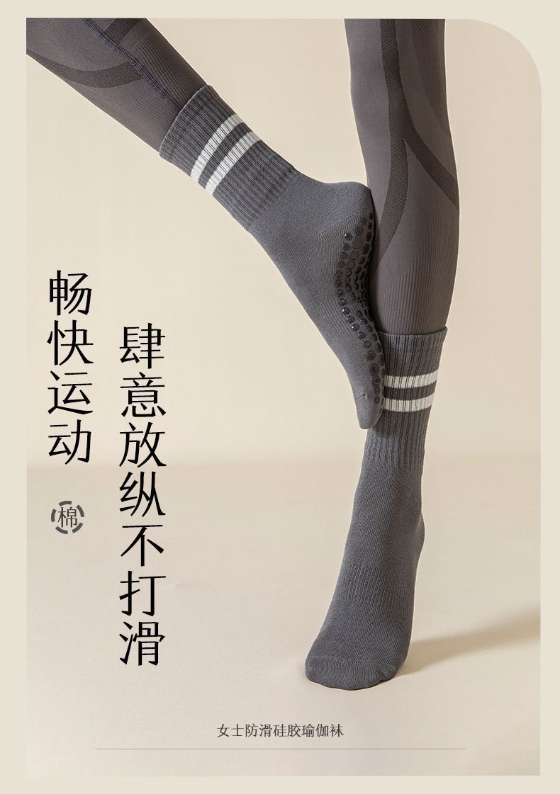Calcetines de yoga calcetines de media pantorrilla para mujer Calcetines deportivos de color sólido de silicona antideslizante profesional especial para interiores Fitness Pilates para mujer