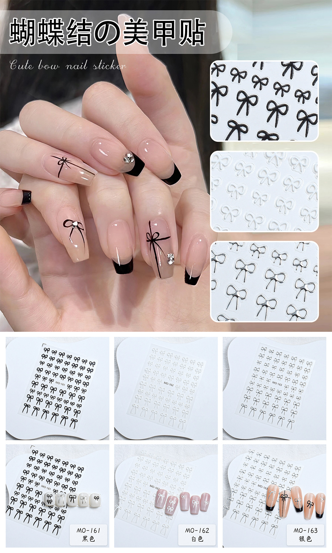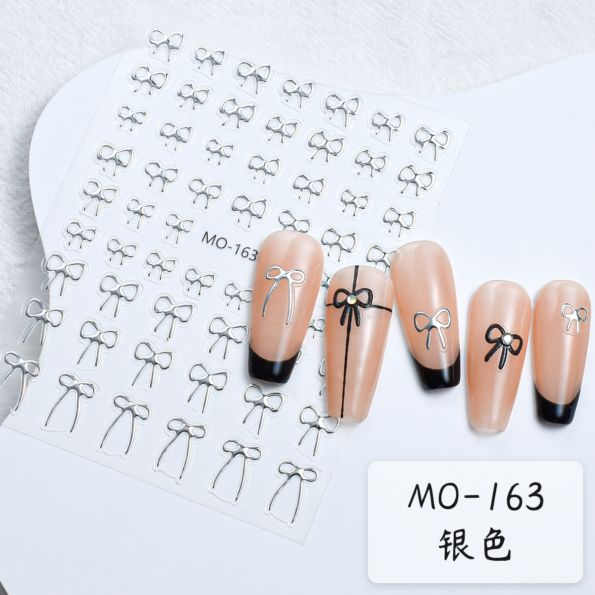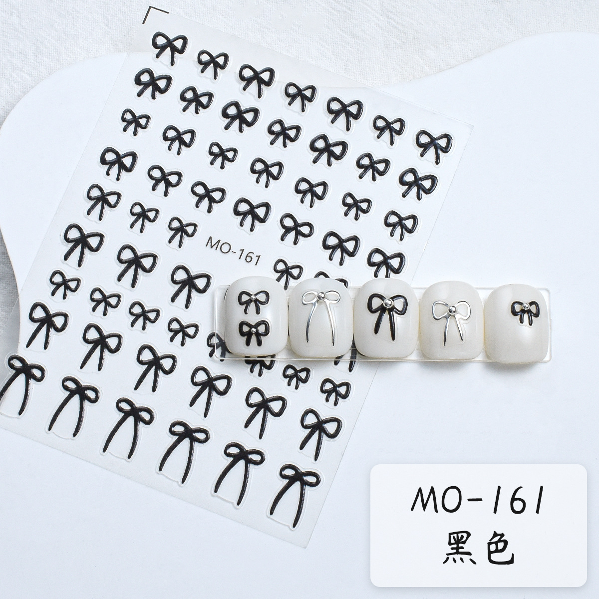 Pegatinas de uñas en relieve tridimensional arco negro blanco plata arco lindo 3D calcomanías adhesivas decoraciones