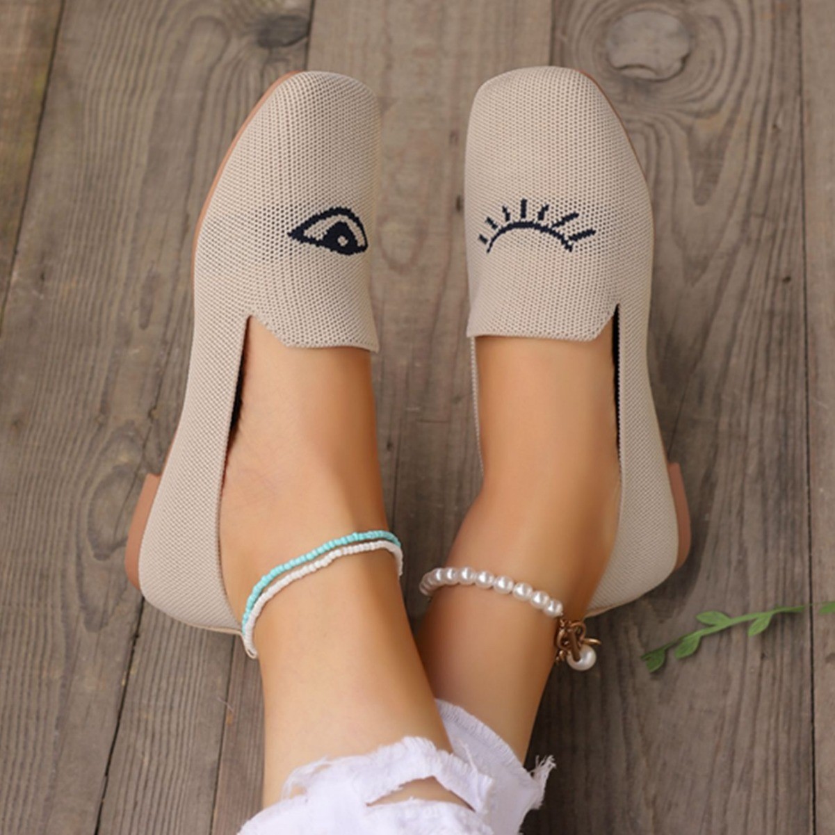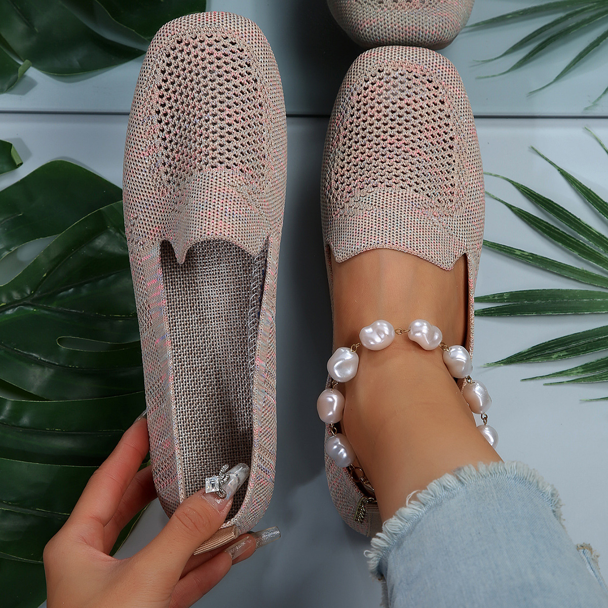 Estación independiente 2024 primavera nuevo estilo comercio exterior europeo y americano de gran tamaño cabeza cuadrada fondo plano tejido volador zapatos individuales zapatos casuales de una sola pierna para mujer