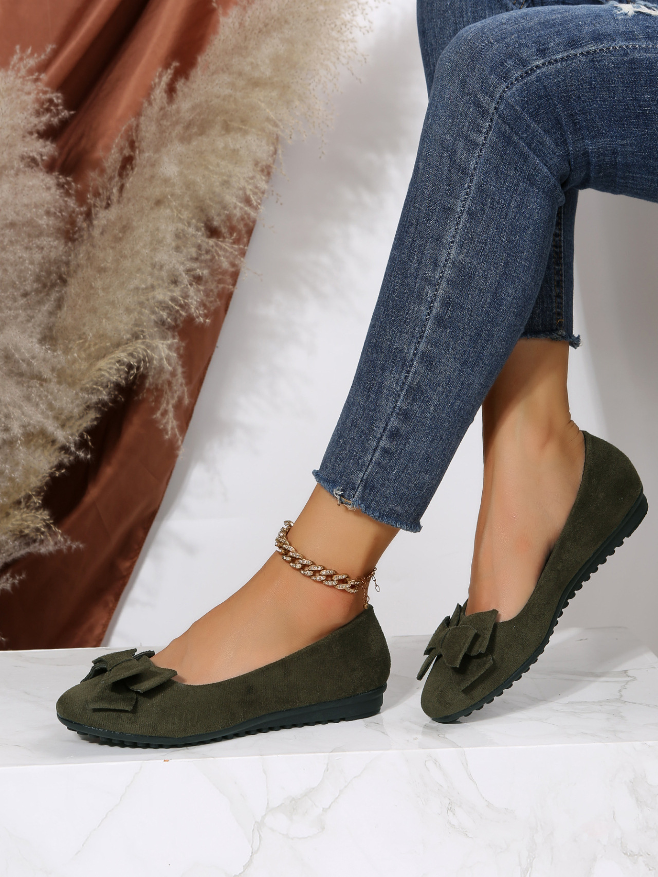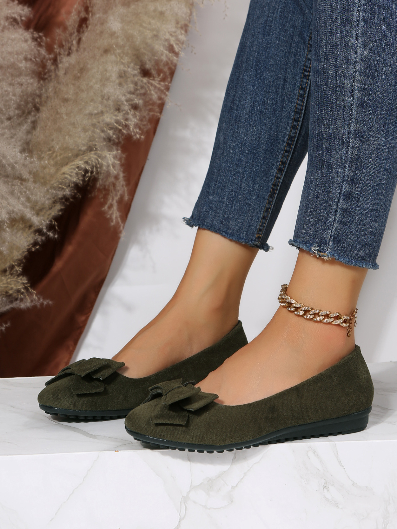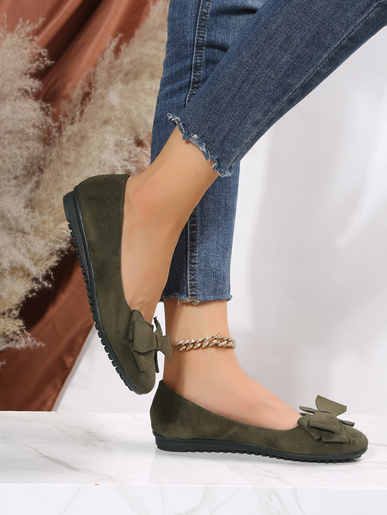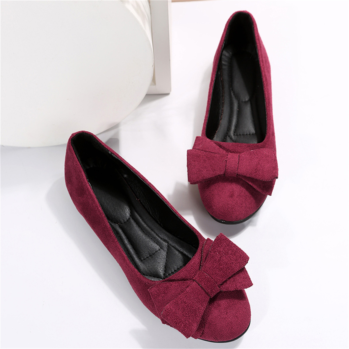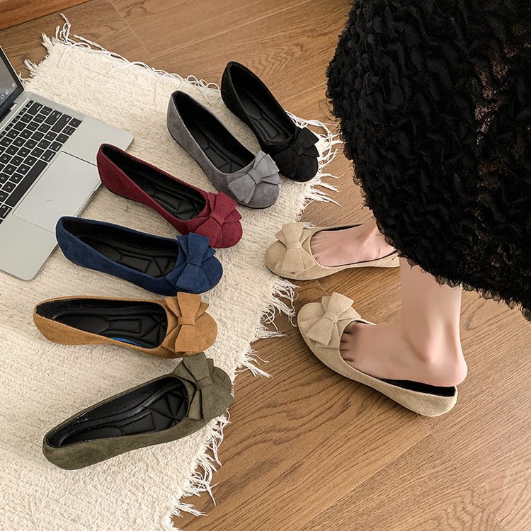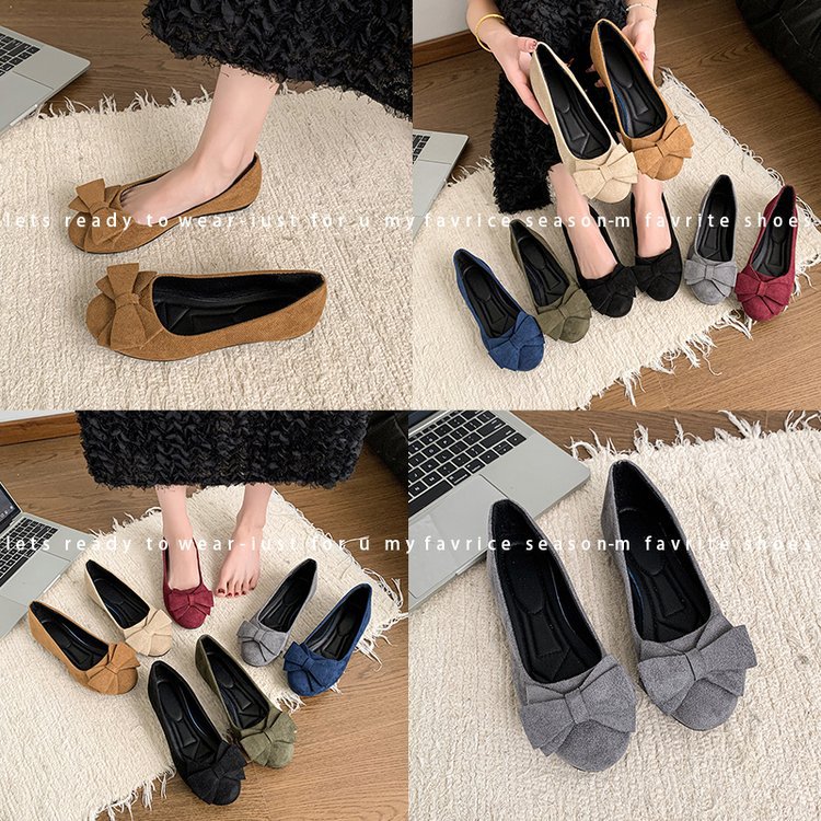 2025 primavera nuevo estilo comercio exterior gran tamaño plano casual zapatos individuales pies mujer gamuza lazo cabeza redonda zapatos de guisantes