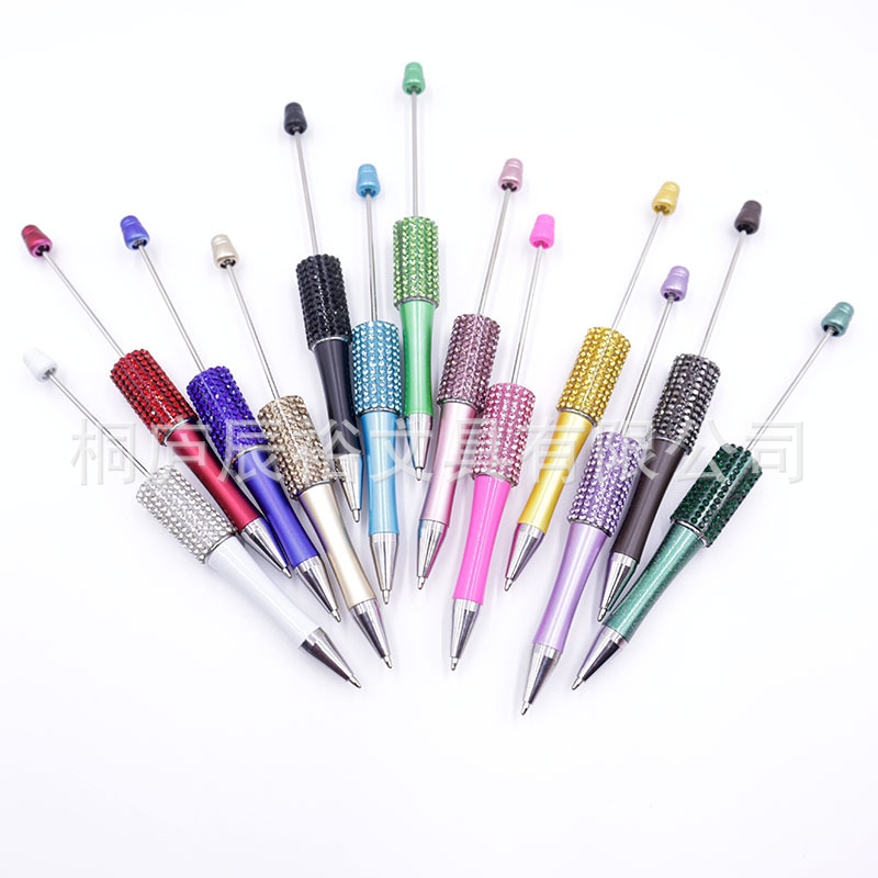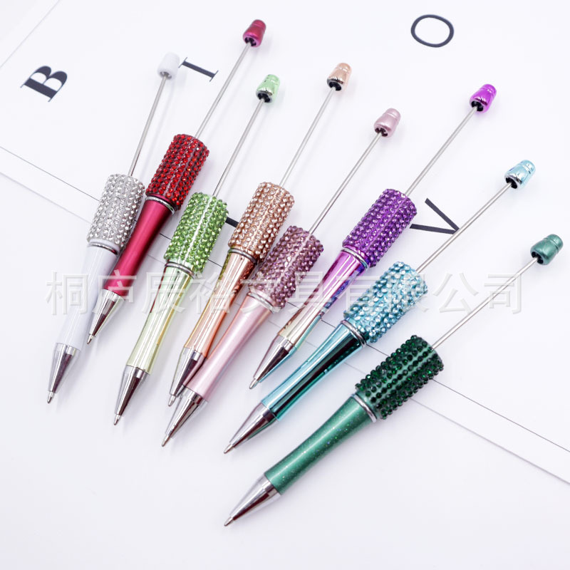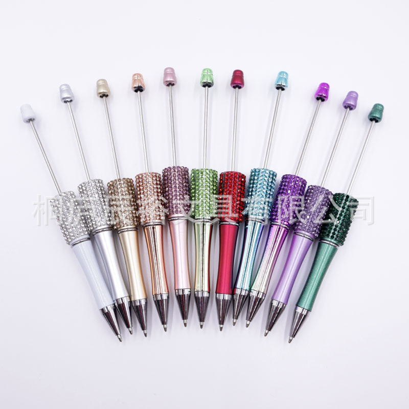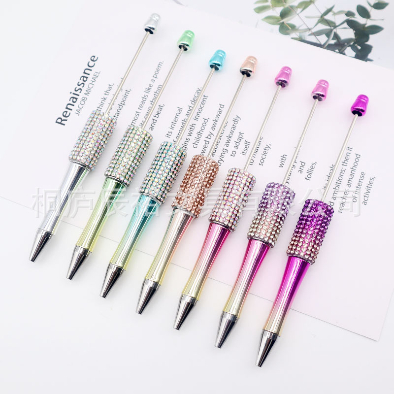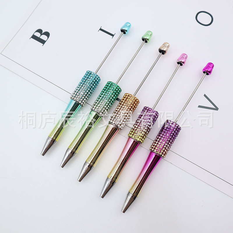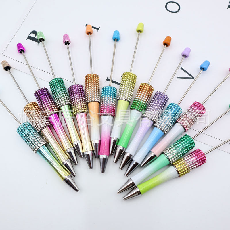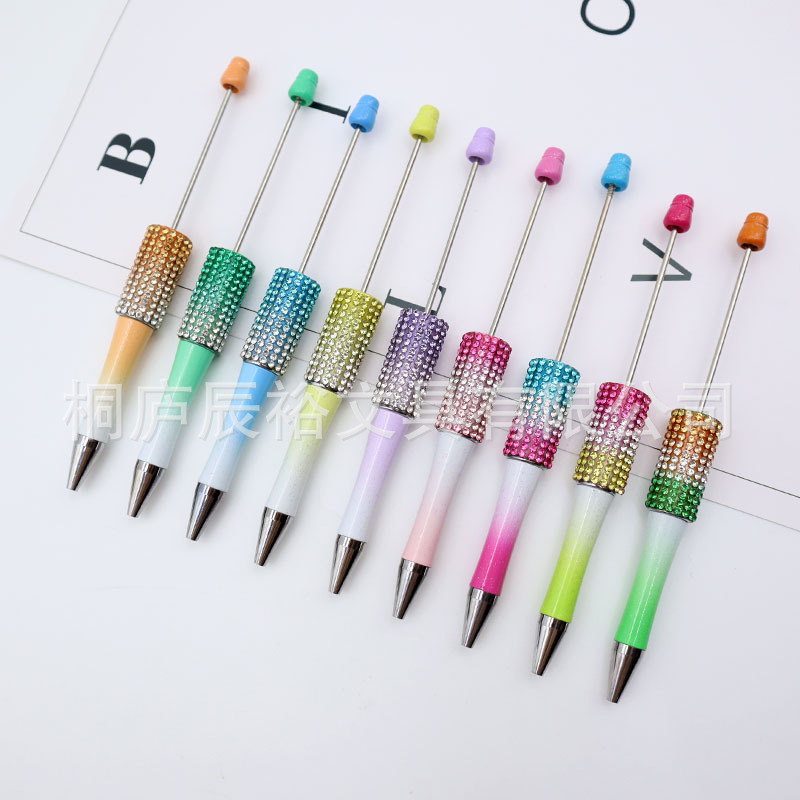 Bolígrafo giratorio de grano lindo de color degradado de tendencia de alto valor Bolígrafo de gomas galvanizado con cuentas de diamantes de bricolaje creativo