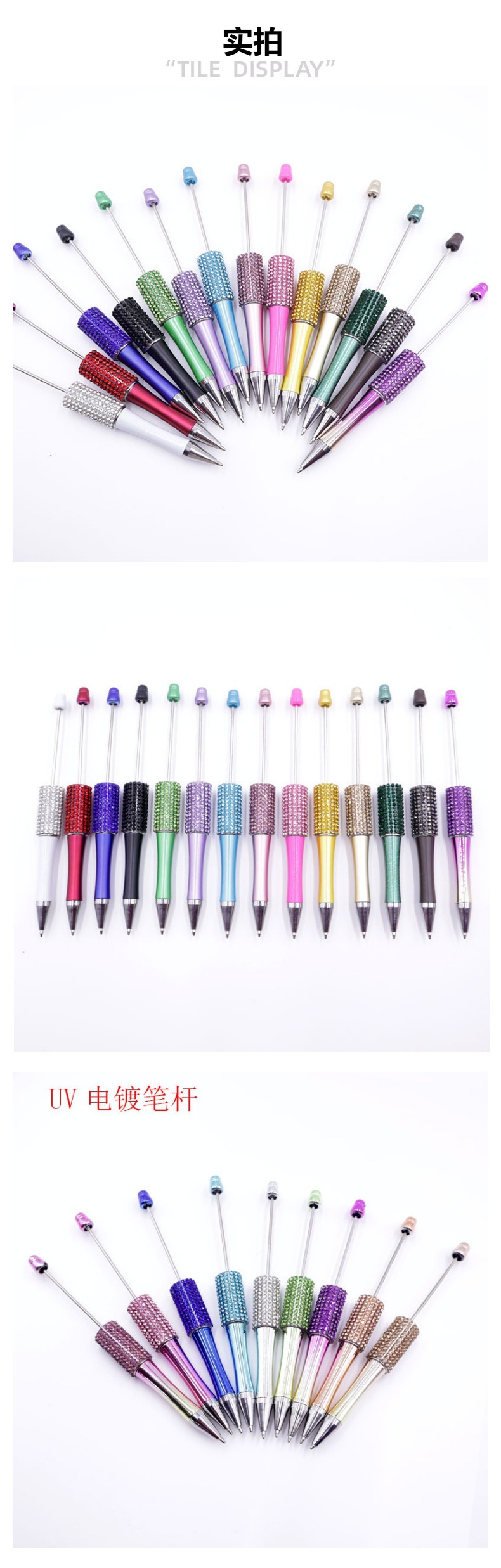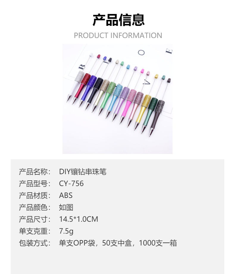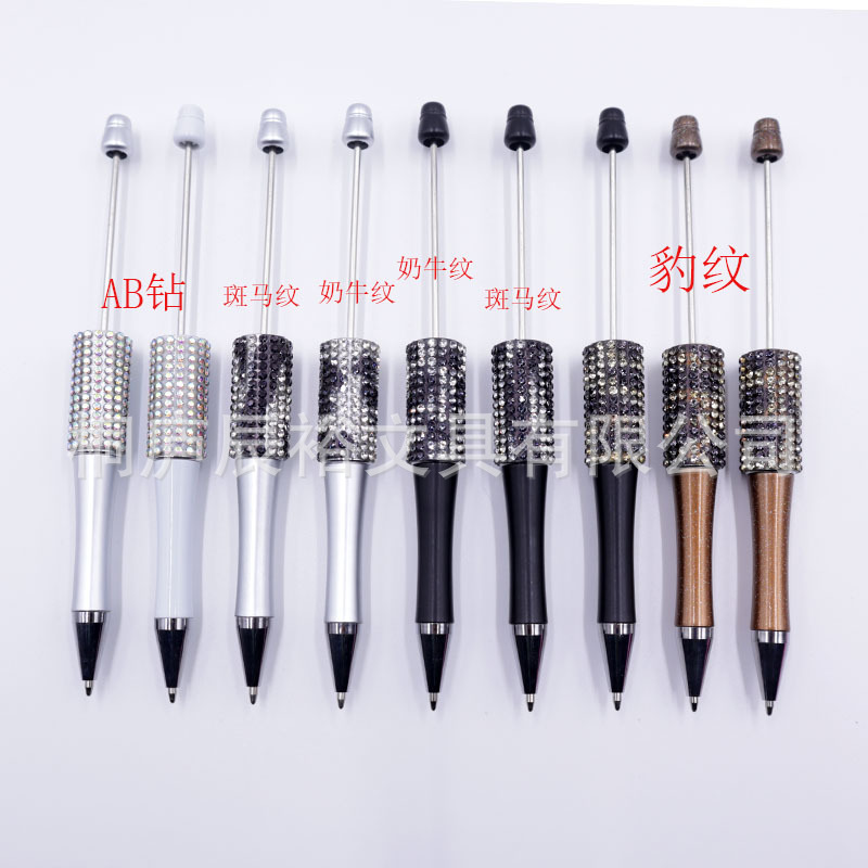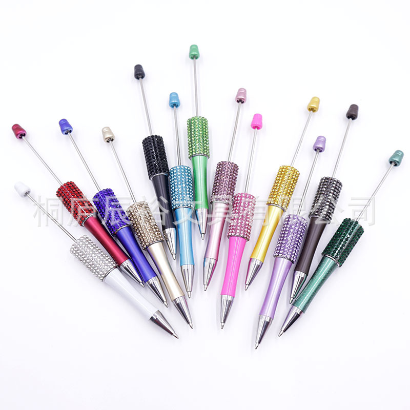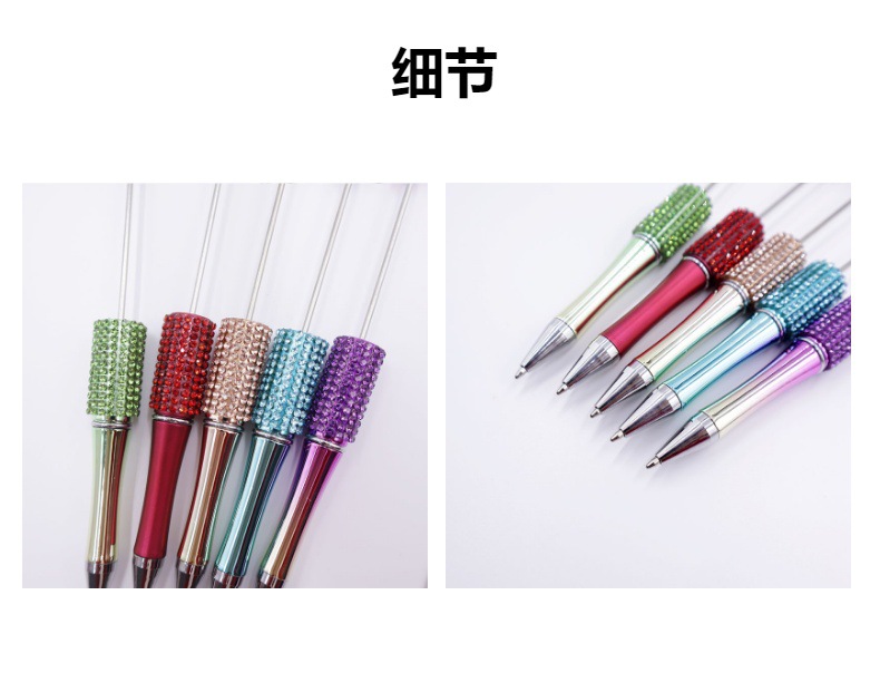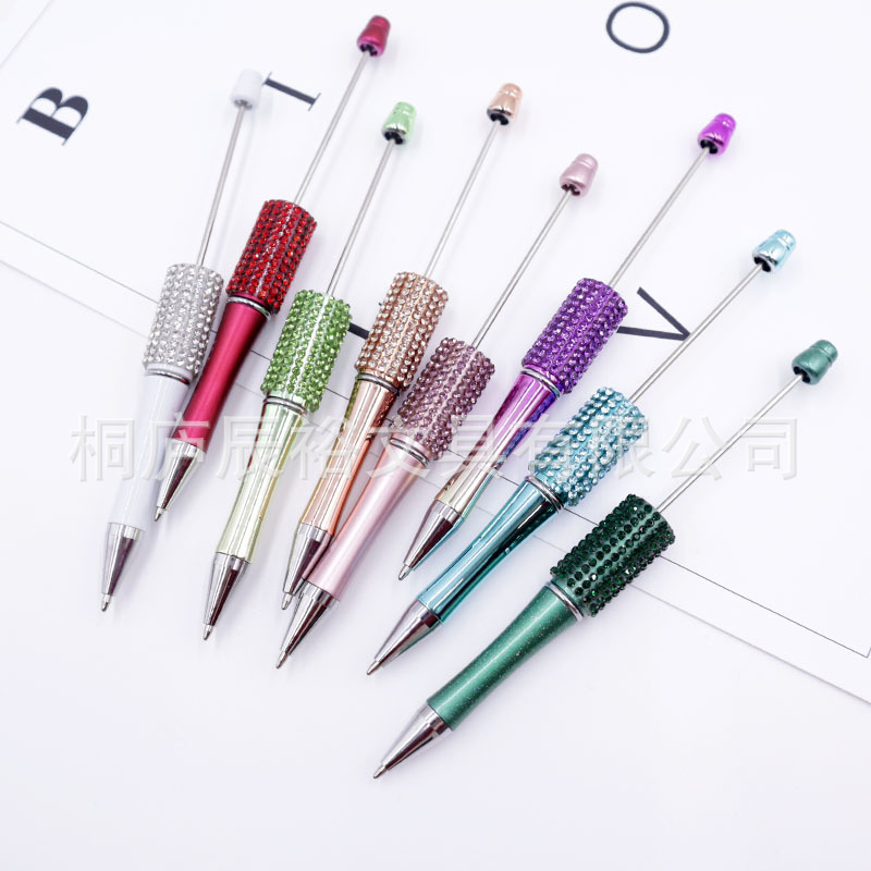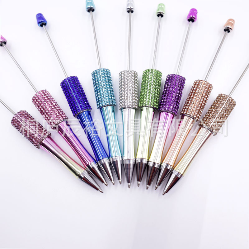 Bolígrafo giratorio de grano lindo de color degradado de tendencia de alto valor Bolígrafo de gomas galvanizado con cuentas de diamantes de bricolaje creativo