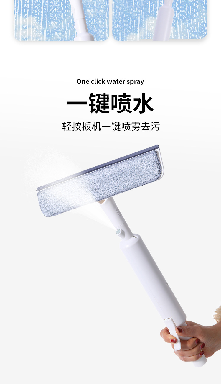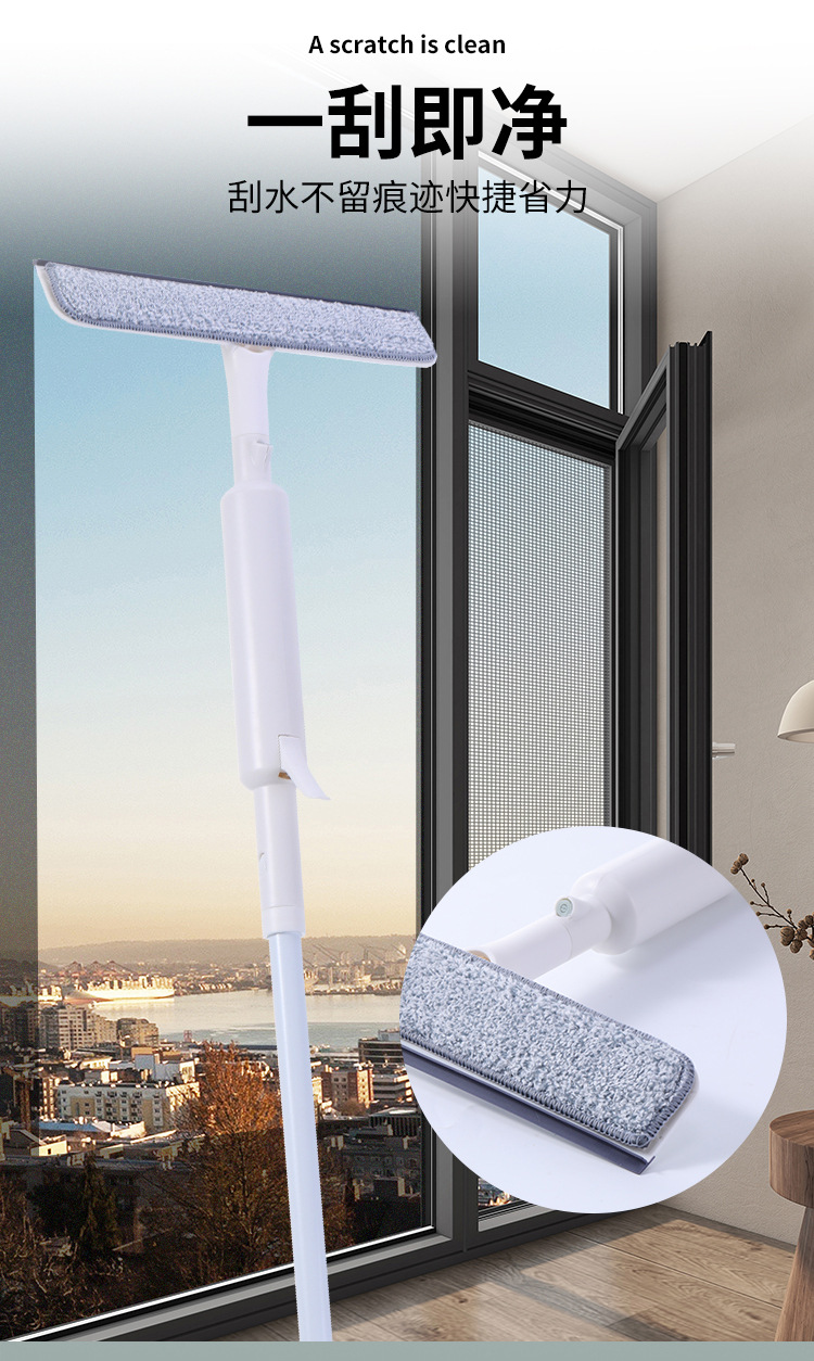 Dispositivo de limpieza de ventanas del hogar artefacto capa alargada pulverización y raspado dispositivo de limpieza de ventanas integrado espejo de lavado de vidrio de doble cara herramienta de limpieza de ventanas