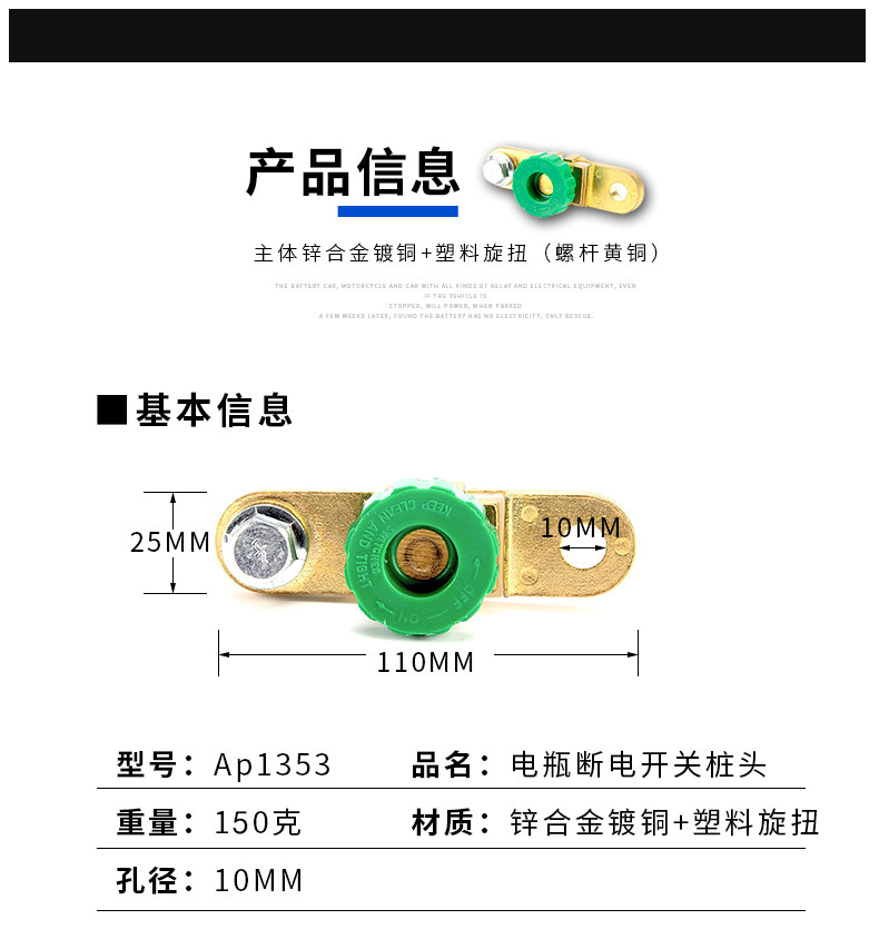 Interruptor de apagado 17mm clip interruptor de protección de batería de automóvil genuino aleación de zinc adecuado para pedidos a pedido