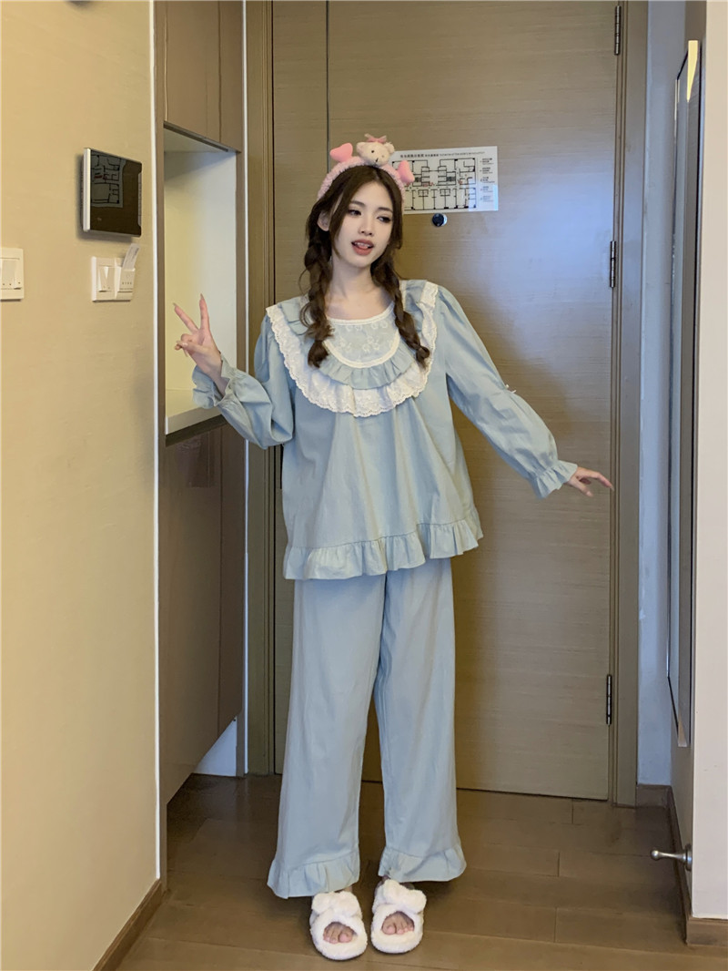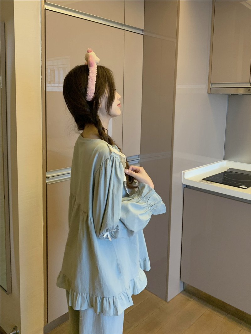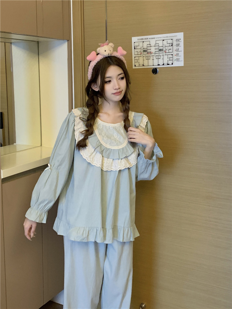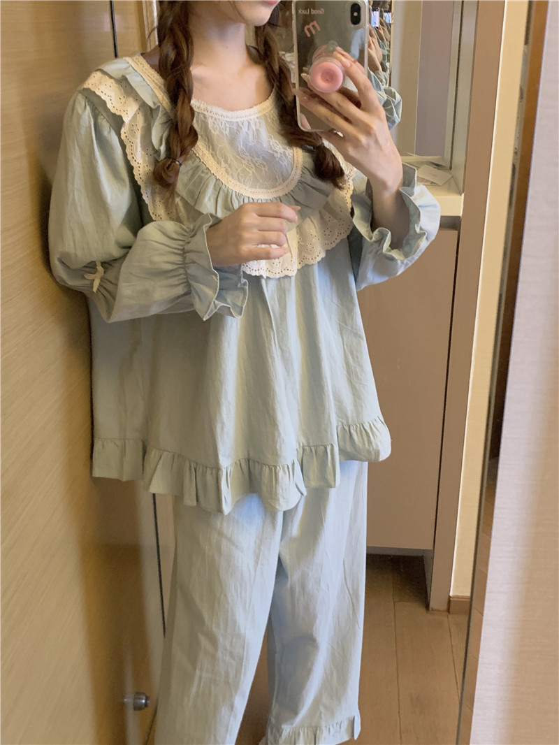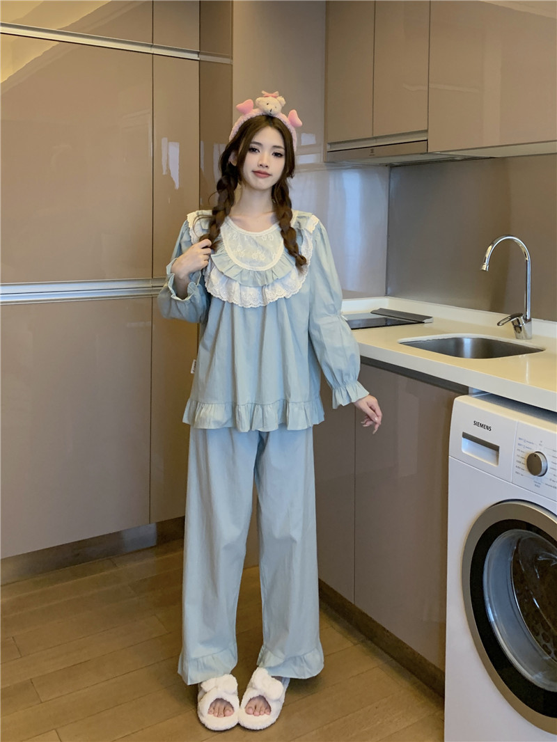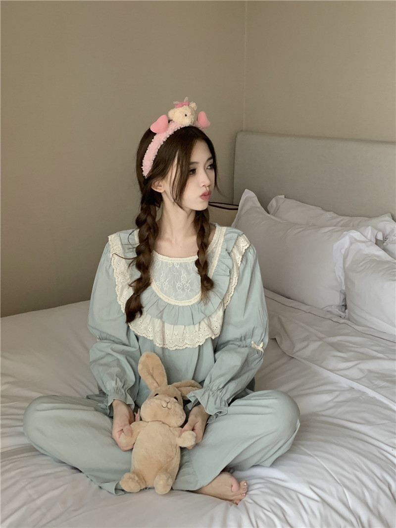 Estilo coreano cómodo estilo Palacio dulce princesa de encaje con volantes otoño homewear traje camisón