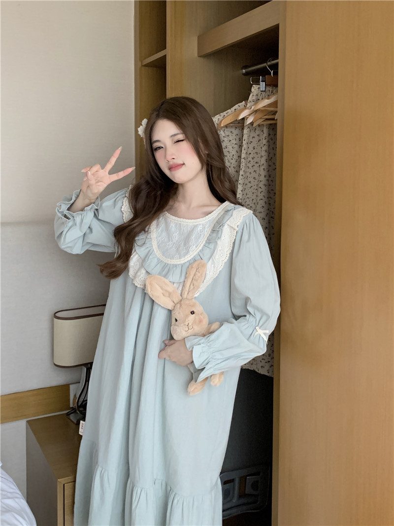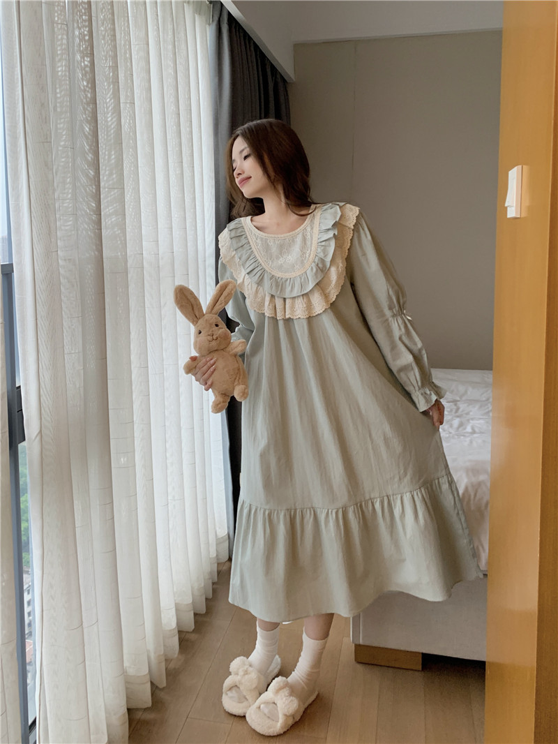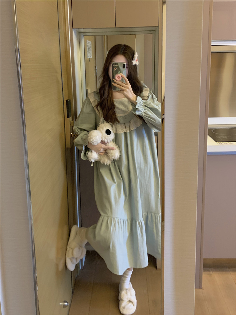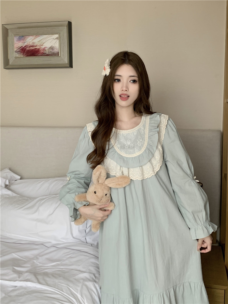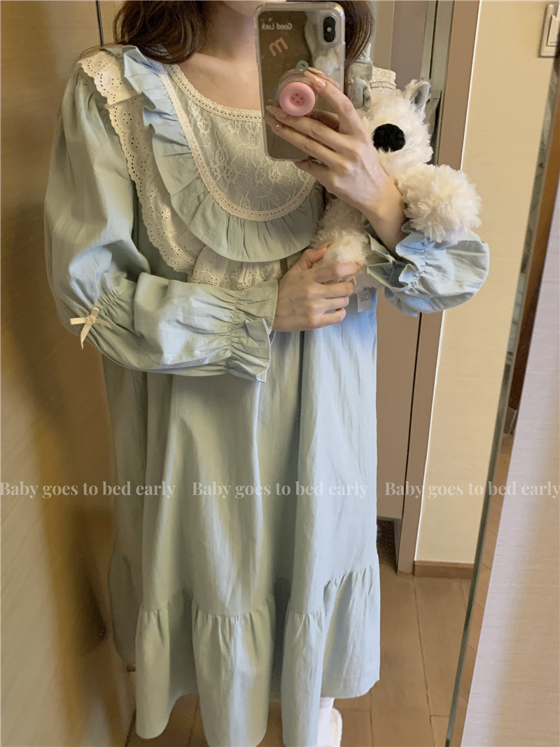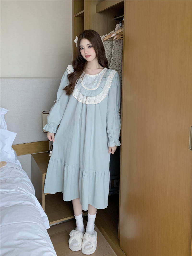 Estilo coreano cómodo estilo Palacio dulce princesa de encaje con volantes otoño homewear traje camisón