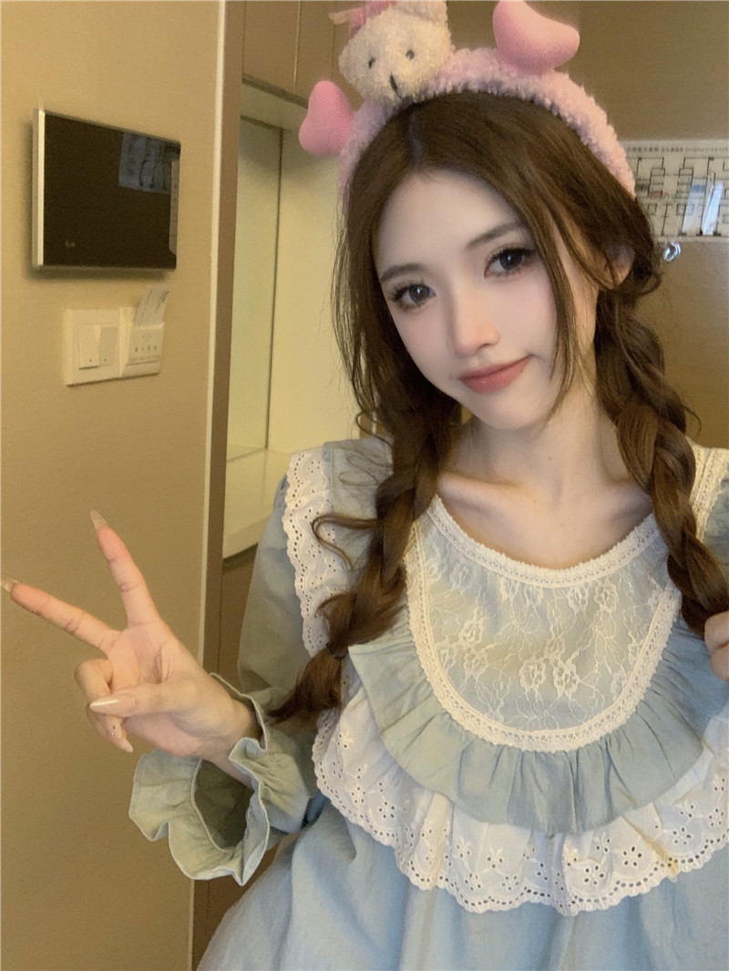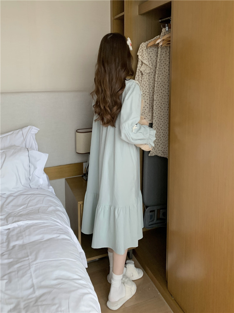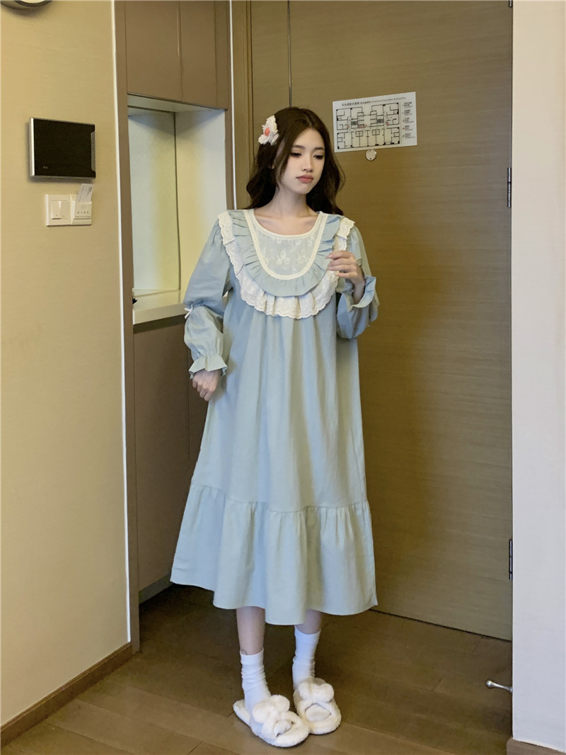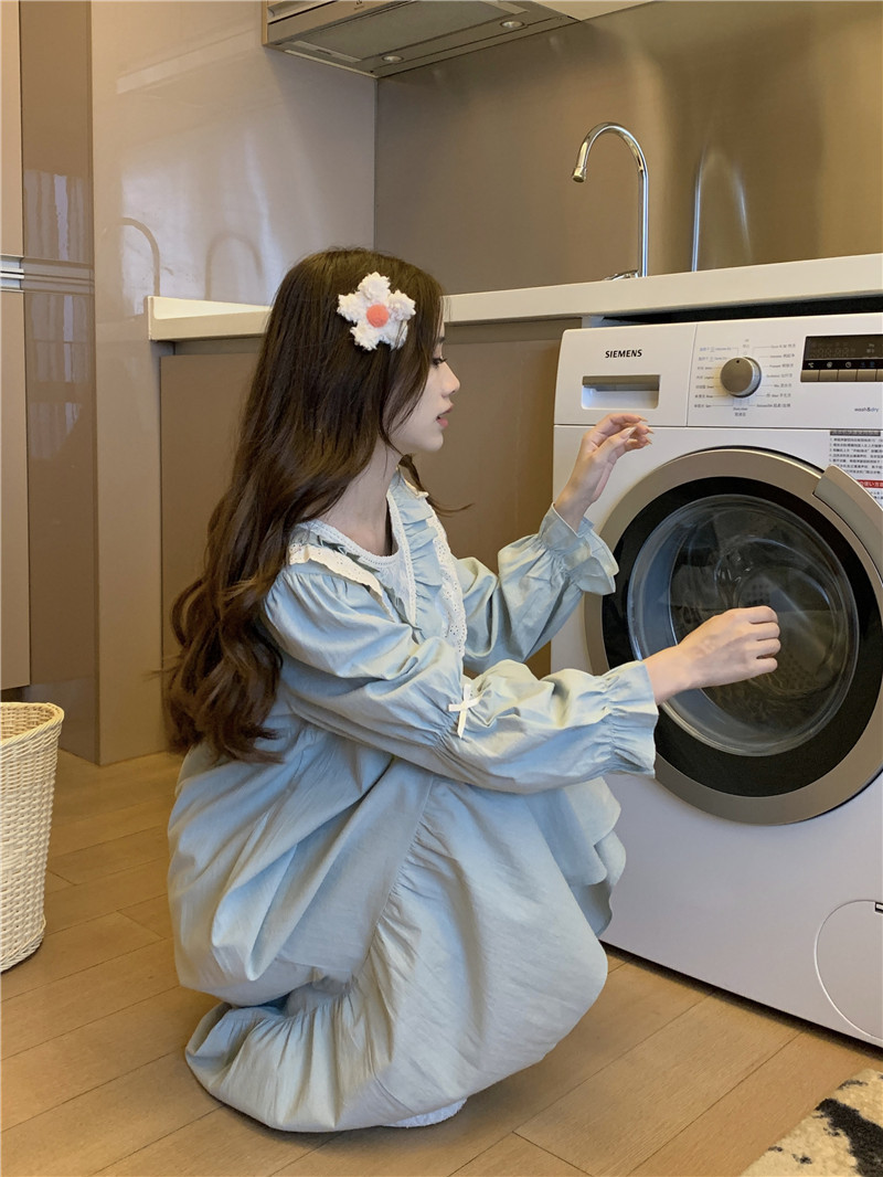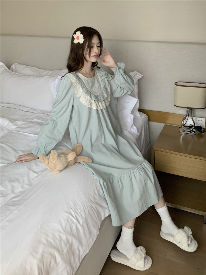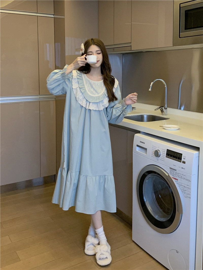 Estilo coreano cómodo estilo Palacio dulce princesa de encaje con volantes otoño homewear traje camisón