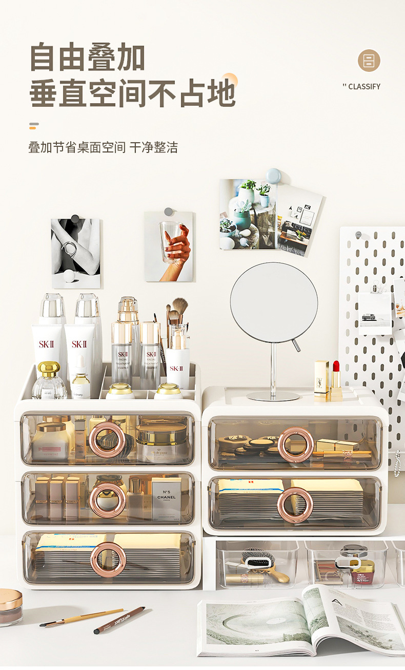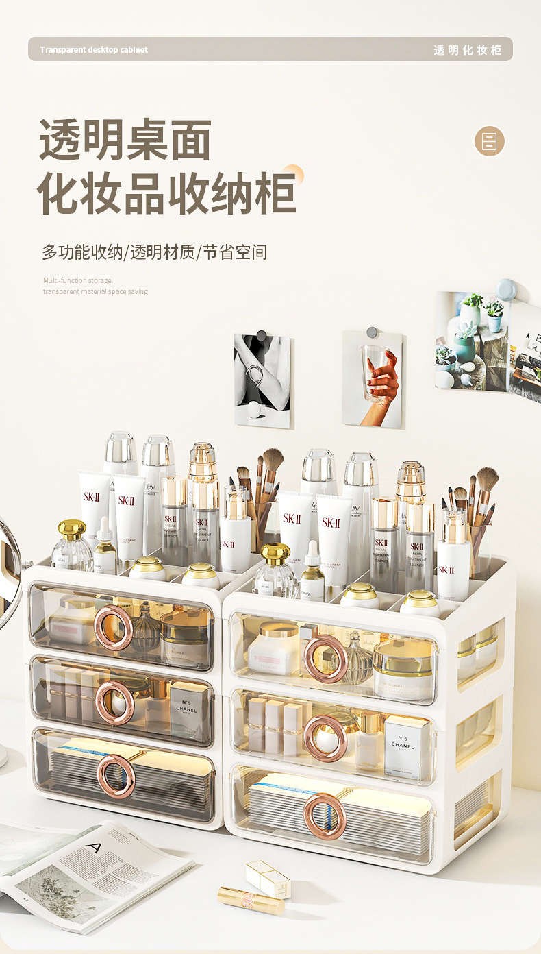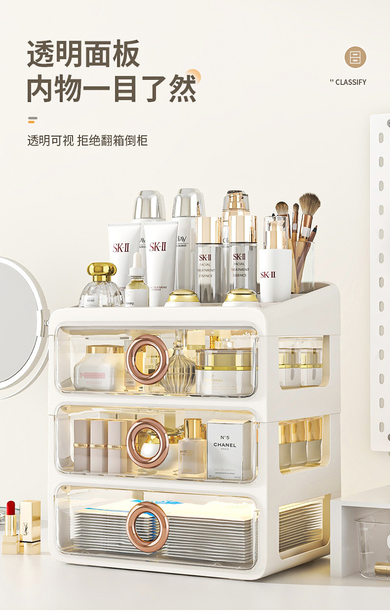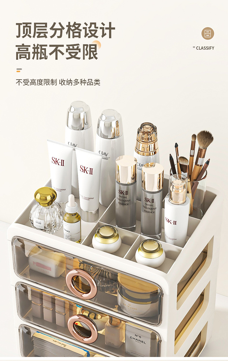 Caja de almacenamiento de cosméticos a prueba de polvo de escritorio transparente tocador de gran capacidad de cuidado de la piel de alto grado de almacenamiento rack de acrílico caja
