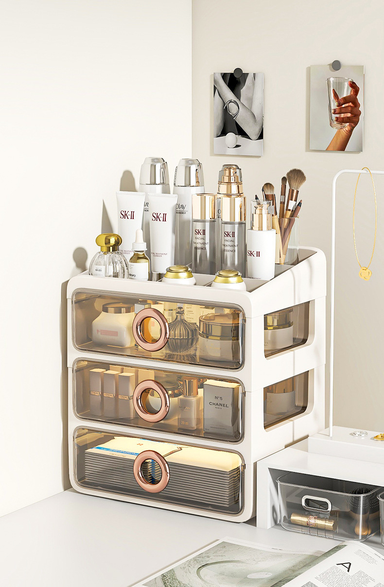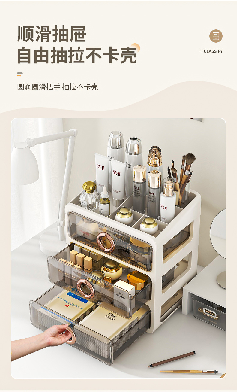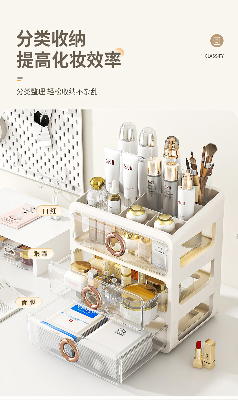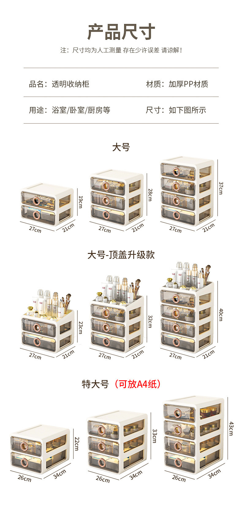 Caja de almacenamiento de cosméticos a prueba de polvo de escritorio transparente tocador de gran capacidad de cuidado de la piel de alto grado de almacenamiento rack de acrílico caja