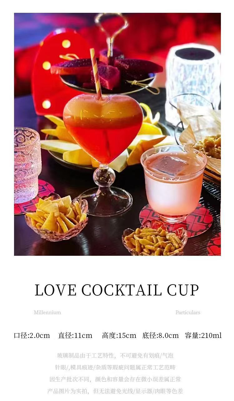 FUENTE fabricante amor cóctel Copa barra personalizada en forma de corazón de cristal creativo regalo Copa