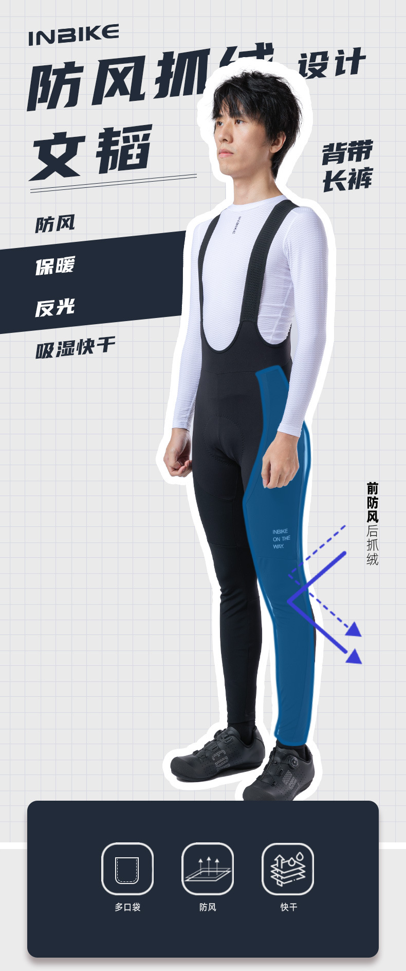 INBIKE nuevo a prueba de viento fleece ciclismo suspender pantalones hombres Otoño e Invierno bicicleta multi-Bolsillo de absorción de humedad pantalones de secado rápido