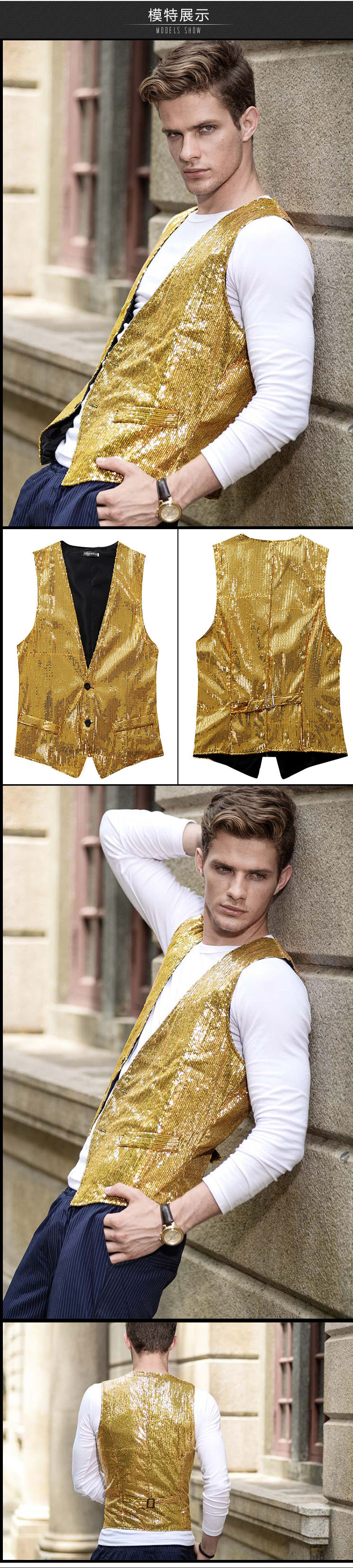 El comercio exterior de Fábrica Directa anfitrión coro de rendimiento de la reunión anual de rendimiento en el escenario mejor hombre fotografía Delgado Chaleco de lentejuelas