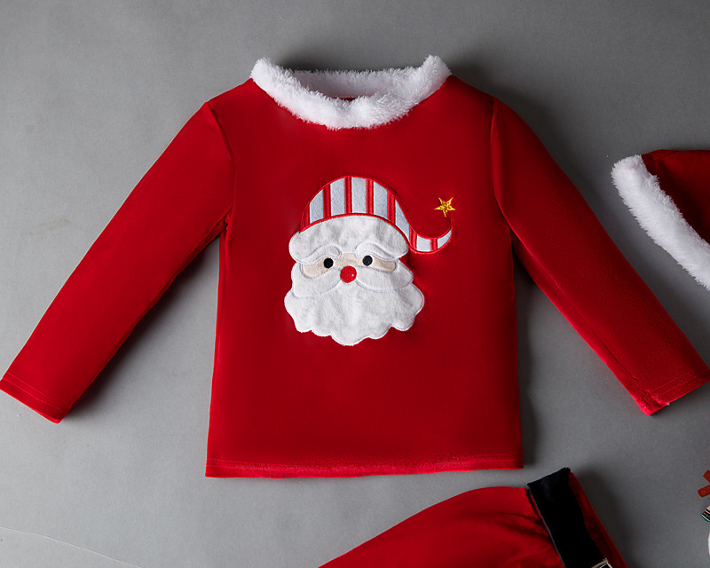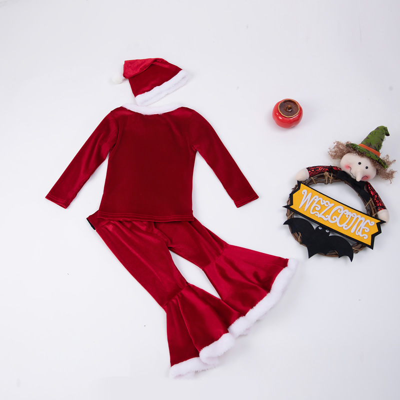 Traje de felpa de Navidad para niños pantalones acampanados europeos y americanos primavera y otoño invierno terciopelo dorado elfo de Navidad ropa conjunto de tres piezas