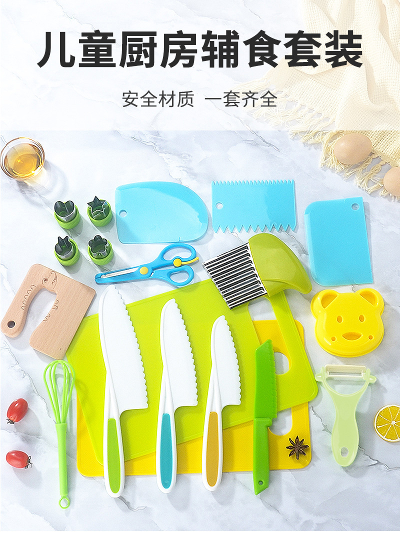 Amazon Niños de corte vegetal cuchillo de la torta traje no hace daño manos de los niños cuchillo de plástico cuchillo de fruta conjunto completo traje