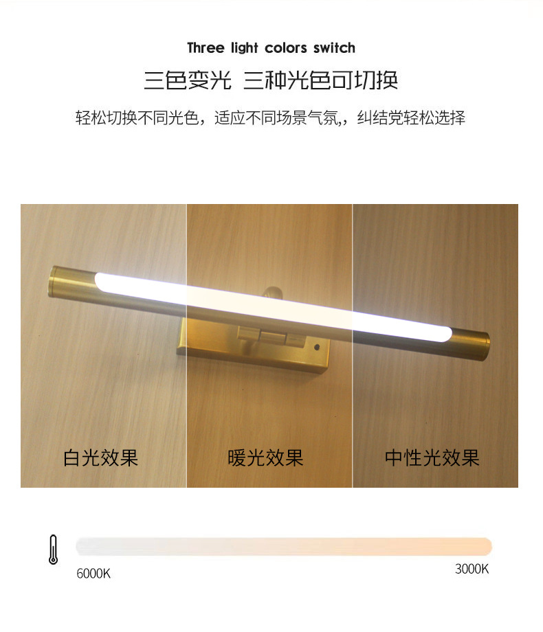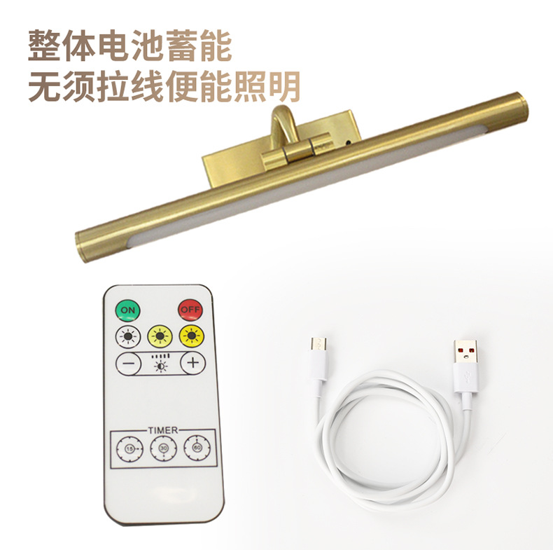 Lámpara frontal de espejo simple transfronteriza sin necesidad de tirar de alambre lámpara de gabinete de espejo control remoto lámpara de pared brillante de tres colores con un solo clic lámpara de dormitorio