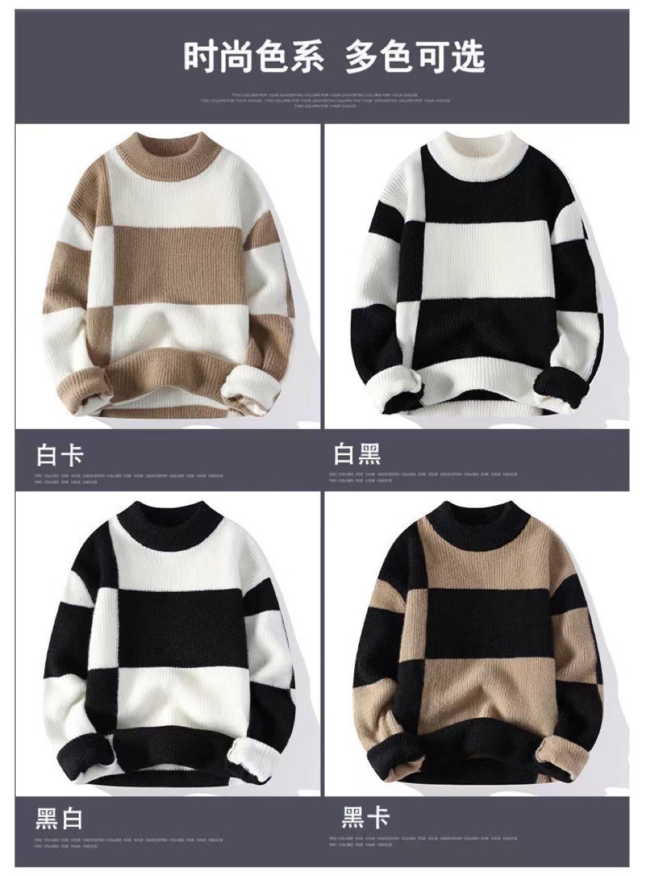 Suéter de los hombres de cuello redondo de invierno contraste de color casual engrosada suéter de los hombres de Hong Kong estilo nuevo prendas de punto de invierno cálido superior
