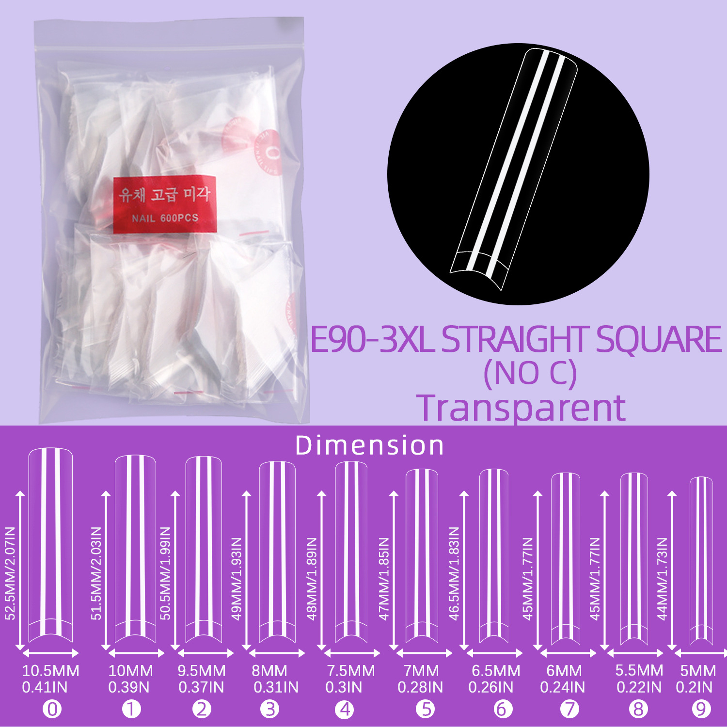 Uñas de manicura transfronterizas 500 piezas uñas postizas transparentes parches de uñas de tubo de agua en bolsas listos para la venta directa de fábrica estilo normcore