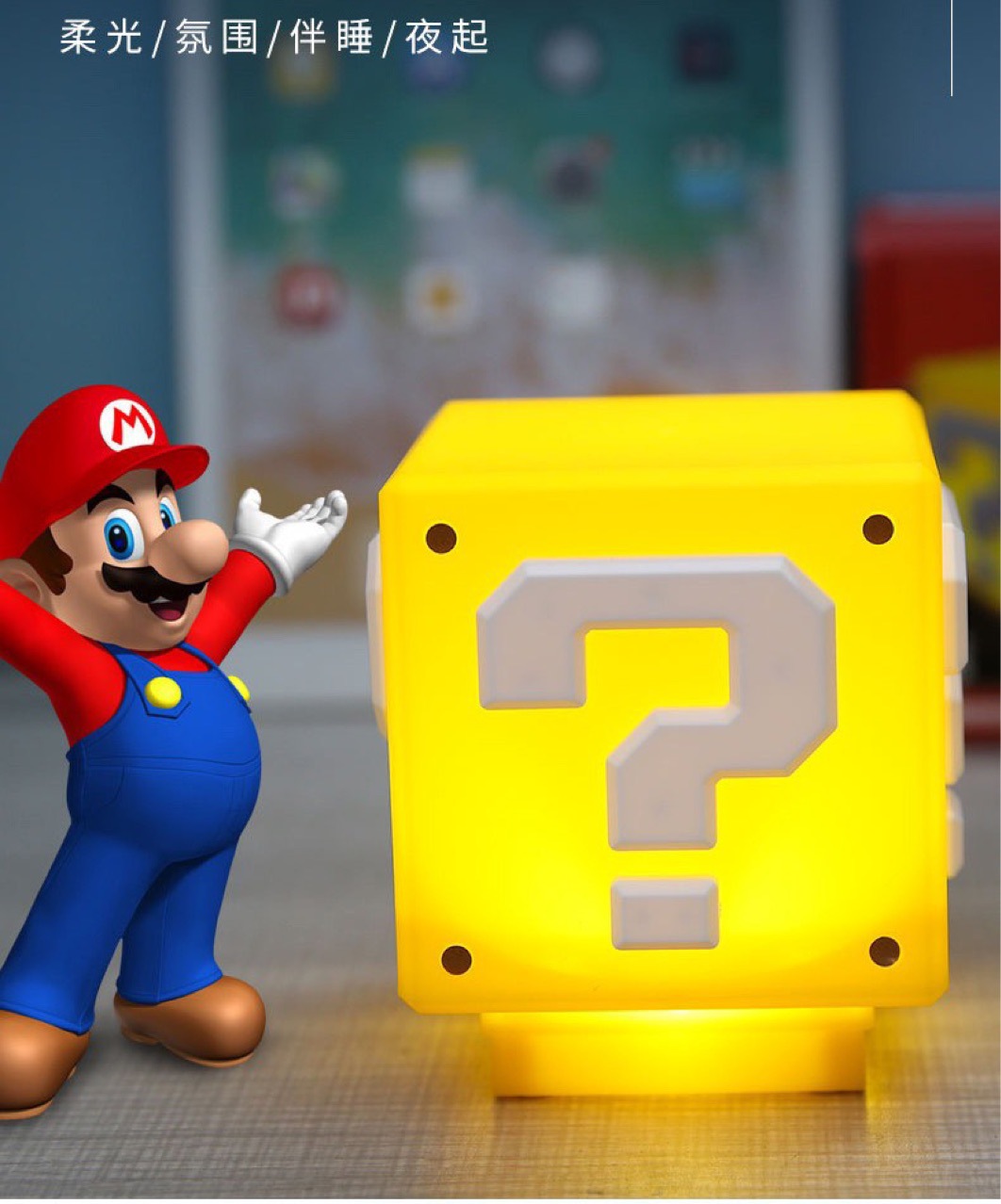 Lámpara de Ambiente con Signo de Interrogación Colorida de Mario, Tercera Generación, para Dormitorio de Videojuegos, Original, Tamaño Completo, Regulable, Estilo Gaming