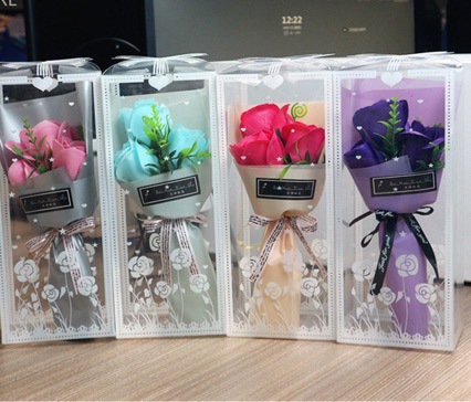 Navidad Día de San Valentín jabón Rosa ramo caja de regalo Clavel jabón flor 3 ramo regalo
